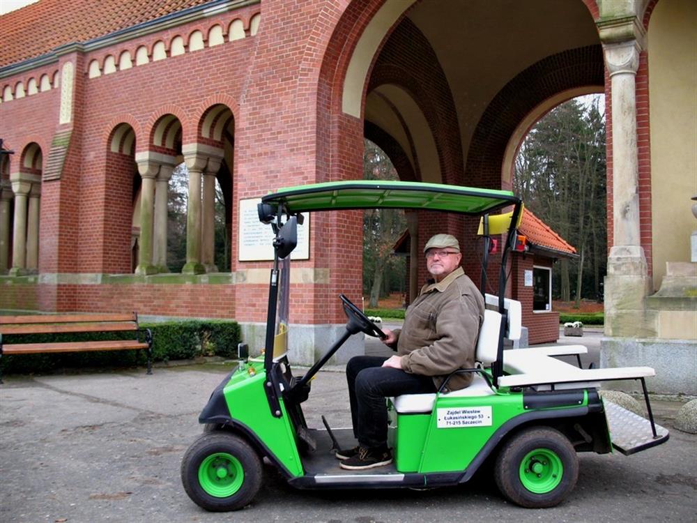 Lata temu - na krótko - po cmentarzu jeździła riksza. Inicjatywa nie została dobrze przyjęta przez szczecinian, więc upadła. Teraz jest nowy pomysł: pojazd elektryczny. Realizuje go Wiesław Zajdel. Od kilku dni jego taksówkę, zasilaną sześcioma akumulatorami (1,5 kAh), spotkać można głównie przy II bramie Cmentarza Centralnego (od ul. Ku Słońcu).