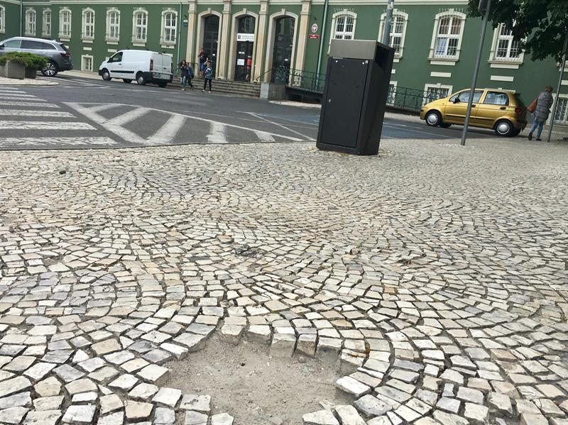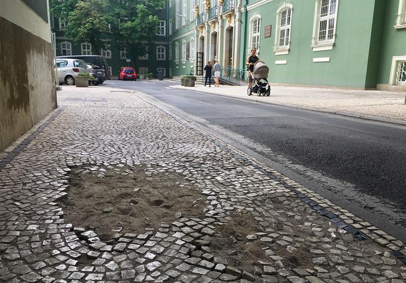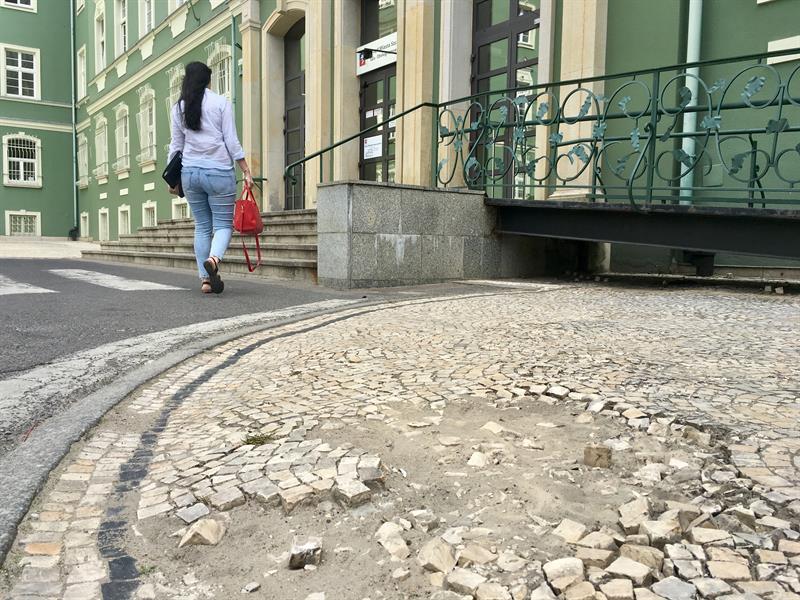 Historyczna kostka kamienna, którą wyłożone są nawierzchnie chodników wokół gmachu szczecińskiego magistratu, się rozpada. W wielu miejscach już wydłubana wała się po okolicy, po jezdni lub zalega pod odrestaurowanymi murami. Tak jest choćby w okolicy prześwitu bramowego przy skrzydle z salą sesyjną radnych. Na dziurawy i koślawy szlak także każdy się natknie tuż przed schodami wejściowymi do przeciwległego skrzydła budynku, w którego parterze mieści się biuro obsługi interesantów. ©℗