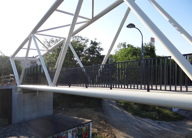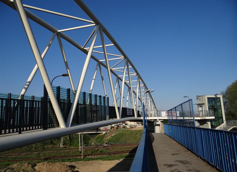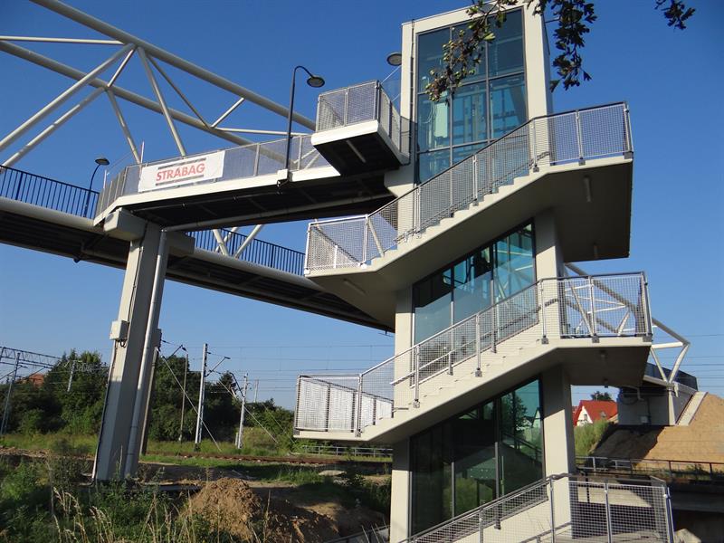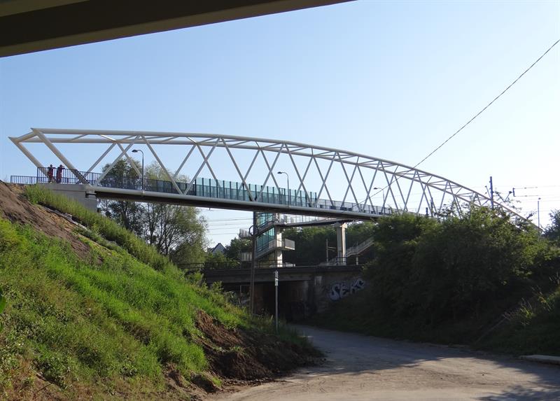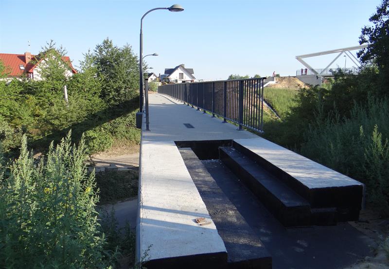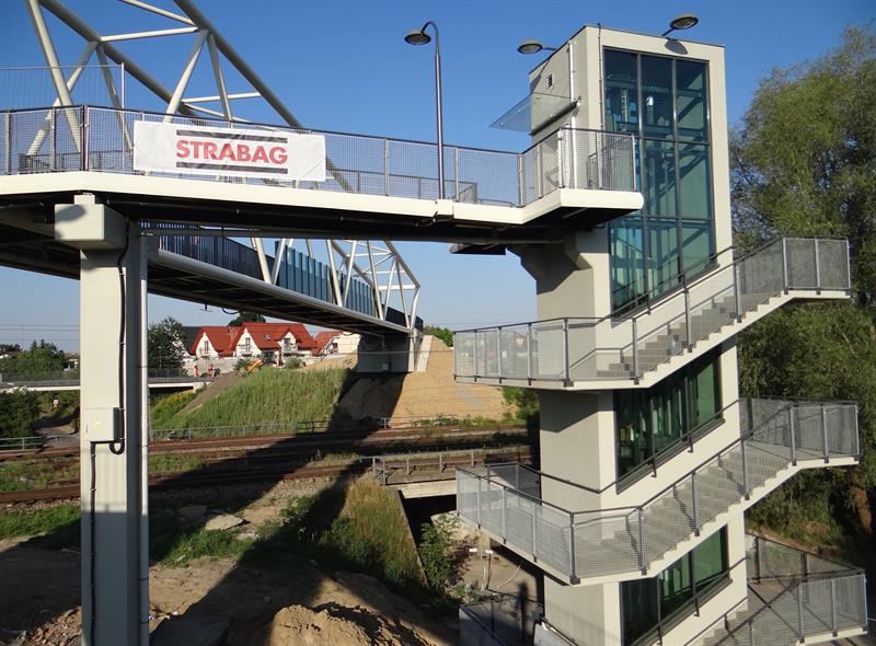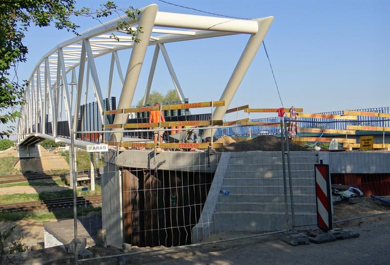 Integralną częścią inwestycji jest wzniesiona tam nowa wieża ze schodami i windą wraz z łącznikiem na wysokości pomostu dłuższej z kładek. Obie konstrukcje zostały już wyposażone w balustrady i zamontowano na nich latarnie. Nową, dwa razy dłuższą od dotychczasowej, kładkę o szerokości 3,5 m z obu stron piesi i rowerzyści będą mogli pokonywać bez dodatkowych wędrówek – jak do tej pory – schodami w połowie drogi i korzystania z dojścia pod wiaduktem kolejowym lub skrótem w poprzek, bo często przebiegali górą przez tory.