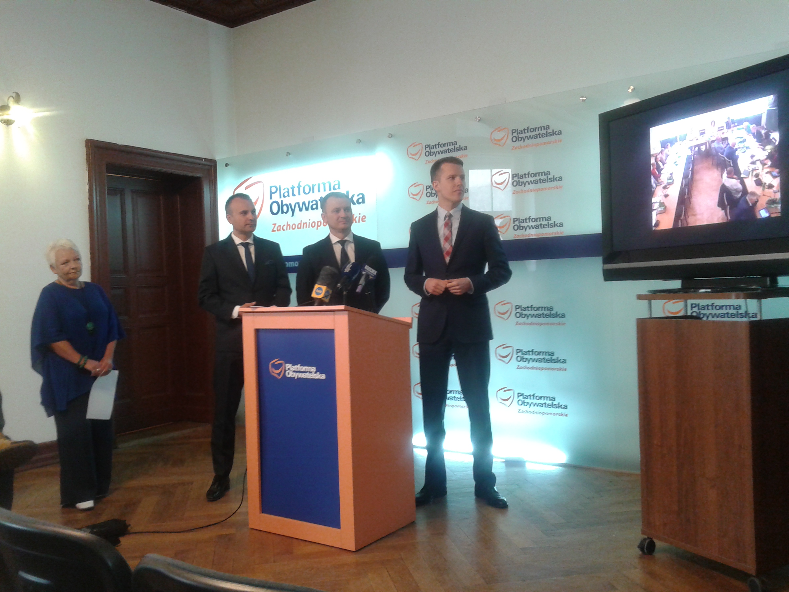 Na zdjęciu: Politycy PO podczas poniedziałkowej konferencji prasowej, którą zorganizowali w Szczecinie.