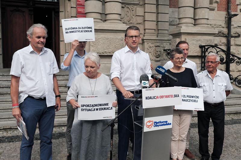 - W polskiej oświacie zgasło światło - ocenił poseł Arkadiusz Marchewka, szef struktur PO w regionie. - Rząd PiS wprowadził deformę oświaty. To nie miało nic wspólnego z reformą, wprowadziło chaos i bałagan. Przez wiele miesięcy głosy nauczycieli, rodziców i ekspertów były przez ten rząd lekceważone. Nie słuchano ich. Jako Koalicja Obywatelska wierzymy, że edukacja to przyszłość, a przyszłość można budować tylko w dialogu i porozumieniu. Oświata w Polsce wymaga realnych działań, a nie pozorowanych dyskusji, pozorowanych okrągłych stołów, gdzie rząd będzie udawał, że nagle, na pięć dni przed rozpoczęciem roku szkolnego, zaczyna kogoś słuchać. Dlaczego nie słuchał wcześniej? Oczywiście chodzi o wybory i o to, żeby próbować znaleźć spokój.