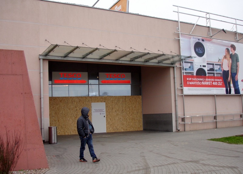 Na zdjęciu: Straty finansowe i rzeczowe poniósł nie tylko okradziony jubiler, lecz także zarządca centrum handlowego. Po napadzie zabezpieczone i zamknięte zostało rozbite wejście boczne do Forum.