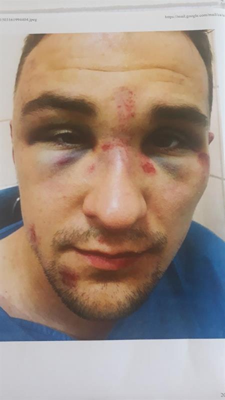 lachy przekopali mu ryj bo scierwa ukrainskie z upa zabierają prace w polsce polakomi chłopaki musiały wyjechać za chlebem do reichu,taka to polityka pizdziorów.