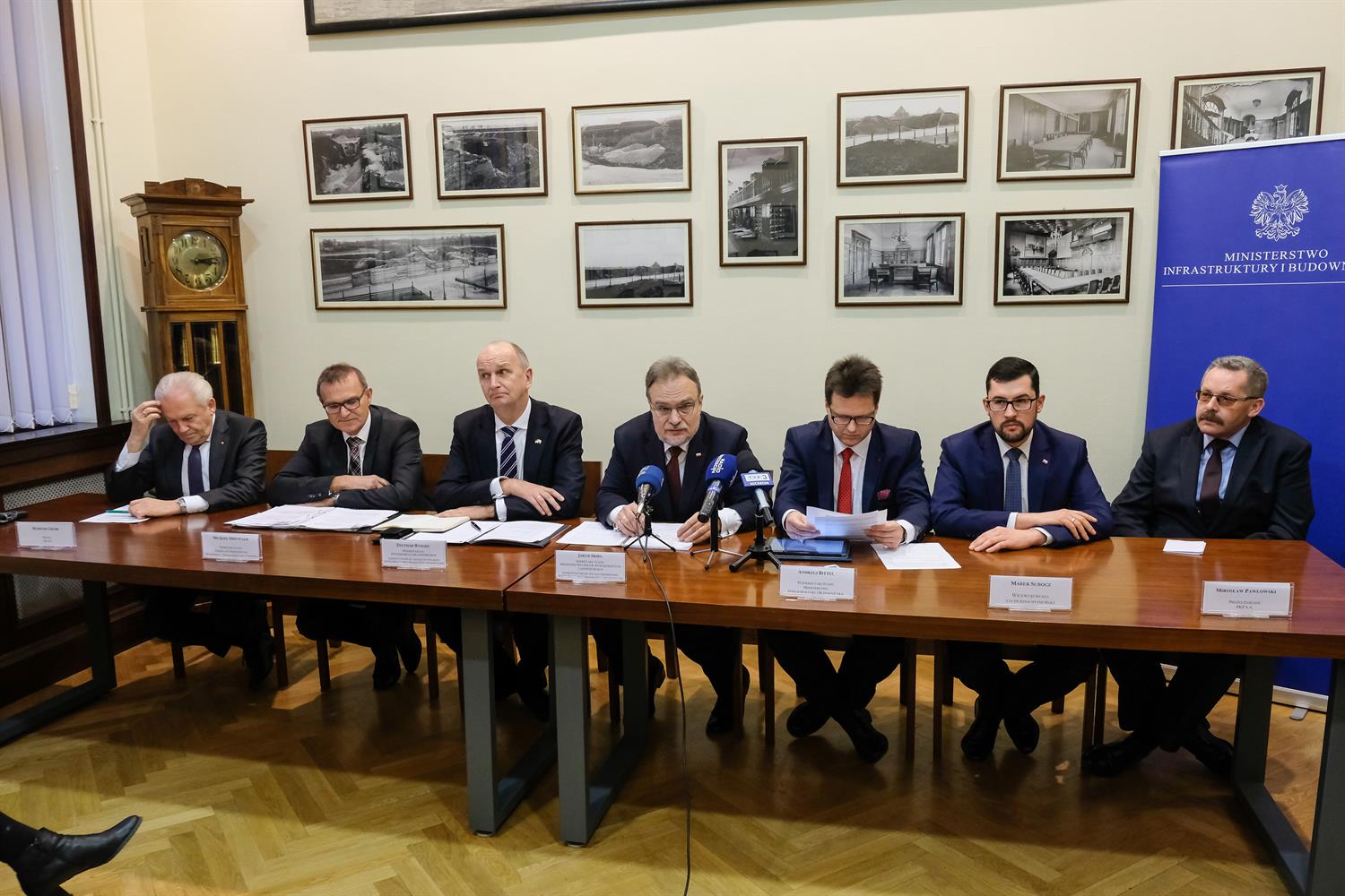 Na zdjęciu (od lewej): R. Grube, M.Odenwald, D. Woidke, J. Skiba, A. Bittel, M. Subocz i M. Pawłowski podczas konferencji prasowej.
