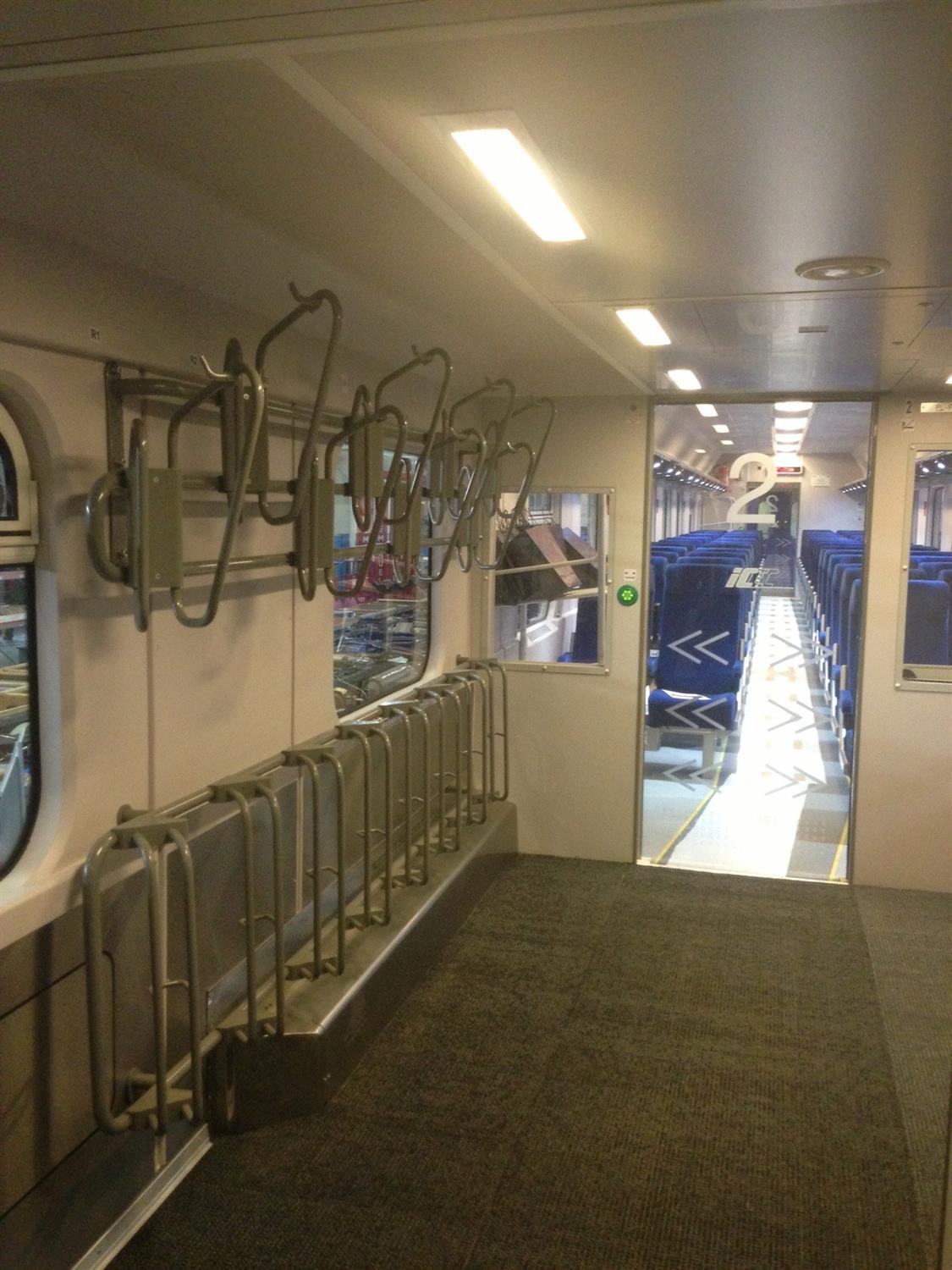 • w pociągach kategorii InterCity kursują pojazdy FLIRT3 oraz PesaDART, w których do dyspozycji pasażerów jest 6 stojaków na rowery. Natomiast w pociągach zestawionych z wagonów są wieszaki w specjalnie dostosowanych wagonach,