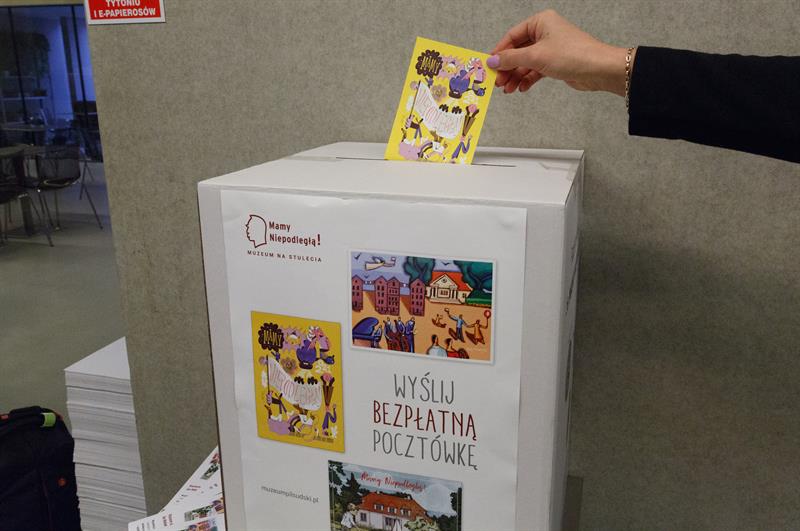 Muzeum Narodowe w Szczecinie kolejny raz przystąpiło do pocztówkowej akcji społecznościowej "MAMY NIEPODLEGŁĄ!", organizowanej przez Muzeum Józefa Piłsudskiego w Sulejówku z okazji Święta Niepodległości. Od soboty (6 listopada) w czterech gmachach Muzeum Narodowego w Szczecinie staną punkty dystrybucji okolicznościowych bezpłatnych kart pocztowych, które będzie można bezpłatnie nadać. Takie pocztówki mają nadrukowane znaczki elektroniczne, ważne do 30 listopada (wyłącznie na terytorium Polski). Nie wymagają dodatkowej opłaty pocztowej.