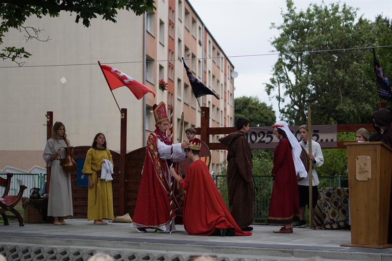 Drużyna Grodu Trzygłowa zorganizowała również pokaz mody średniowiecznej z omówieniem strojów z różnych warstw społecznych wczesnego średniowiecza. To niejedyne atrakcje związane z obchodami 1000-lecia koronacji Bolesława Chrobrego. W programie obchodów znalazły się m.in. inscenizacje historyczne i żywe lekcje historii, występy artystyczne uczniów, turnieje rycerskie i warsztaty dawnych rzemiosł średniowieczny. W sobotę w ziemi umieszczono kapsułę czasu, w której, wśród pamiątek, znalazł się m.in. nasz „Kurier Szczeciński”.