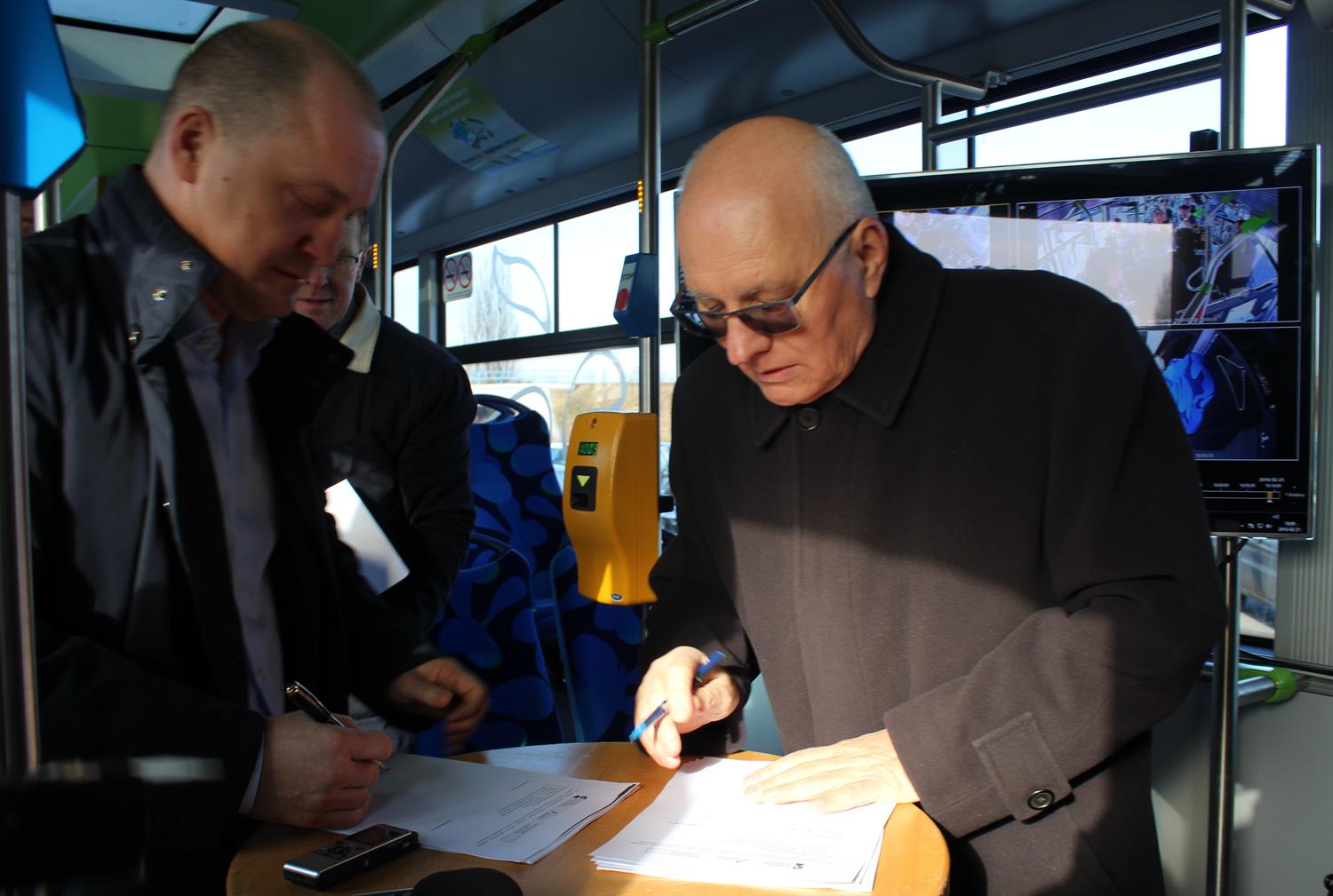 - Uważamy, że to słuszny kierunek - rozpoczął spotkanie Piotr Krzystek, prezydent Szczecina. - Spotykamy się w najnowszych szczecińskich Solarisach, dostarczonych w ostatnich tygodniach. Mamy nadzieję, że to jedne z ostatnich autobusów o napędzie diesla, jakie trafiły do miasta.