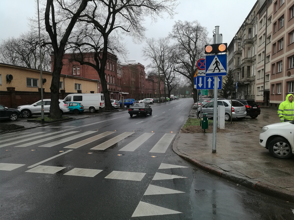 – Rozwiązanie jest wyjątkowe i liczymy na to, że wyeliminuje wypadki z udziałem najmniej zabezpieczonego uczestnika ruchu, jakim jest pieszy. W jezdni umieszczonych zostało dwadzieścia specjalnych "kocich oczek", jak mówi się o światełkach. Zaczynają świecić, kiedy ktoś zbliży się do ulicy. Specjalne czujniki zamontowane są na słupie przed przejściem i wykrywają ruch człowieka, ale nie auta – informuje Hanna Pieczyńska z ZDiTM-u.