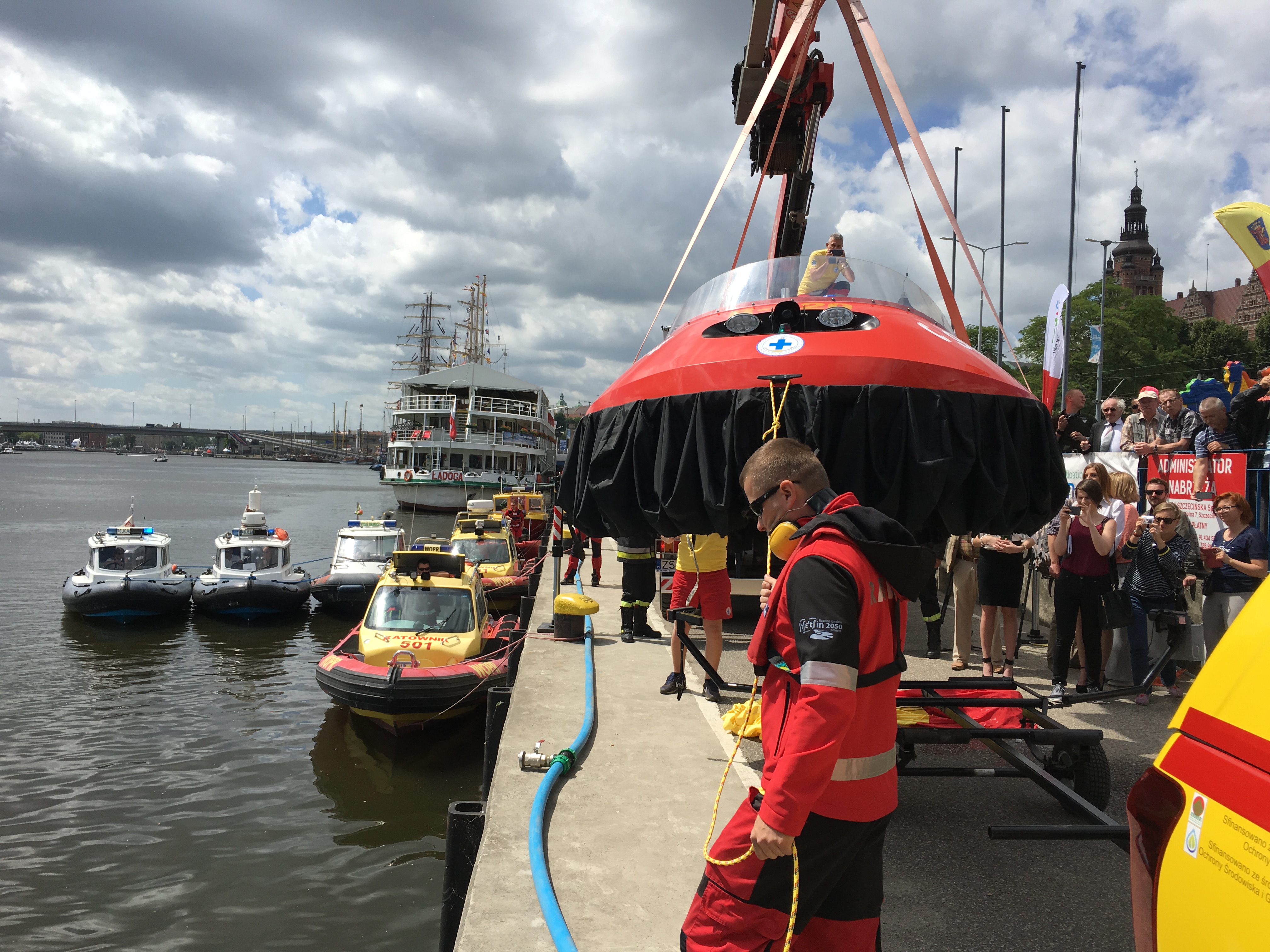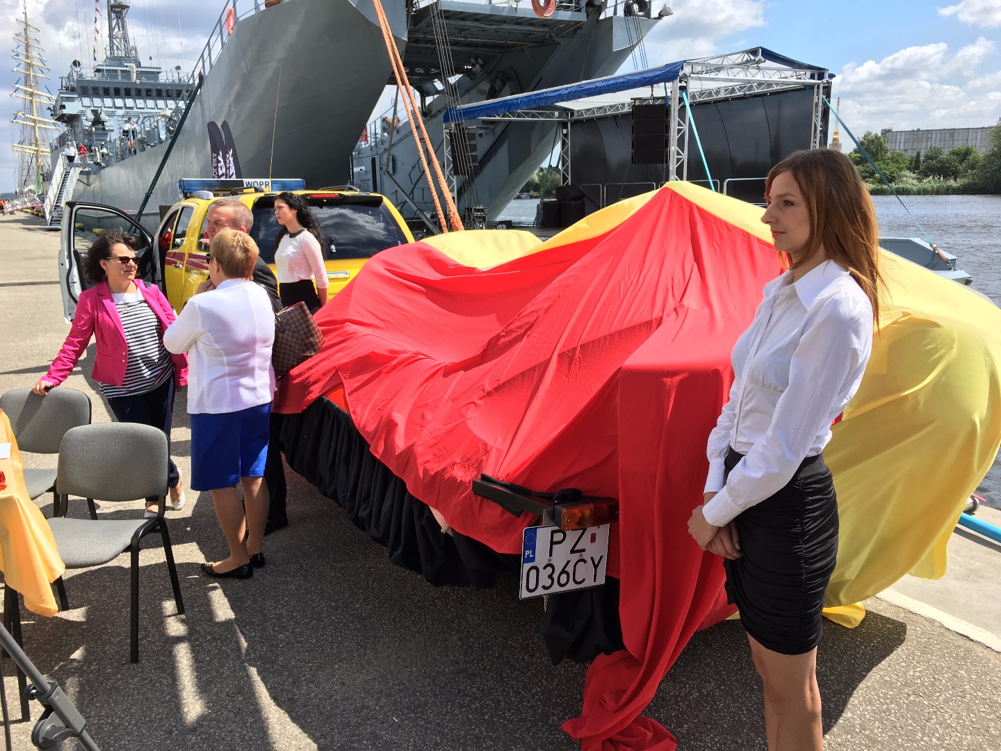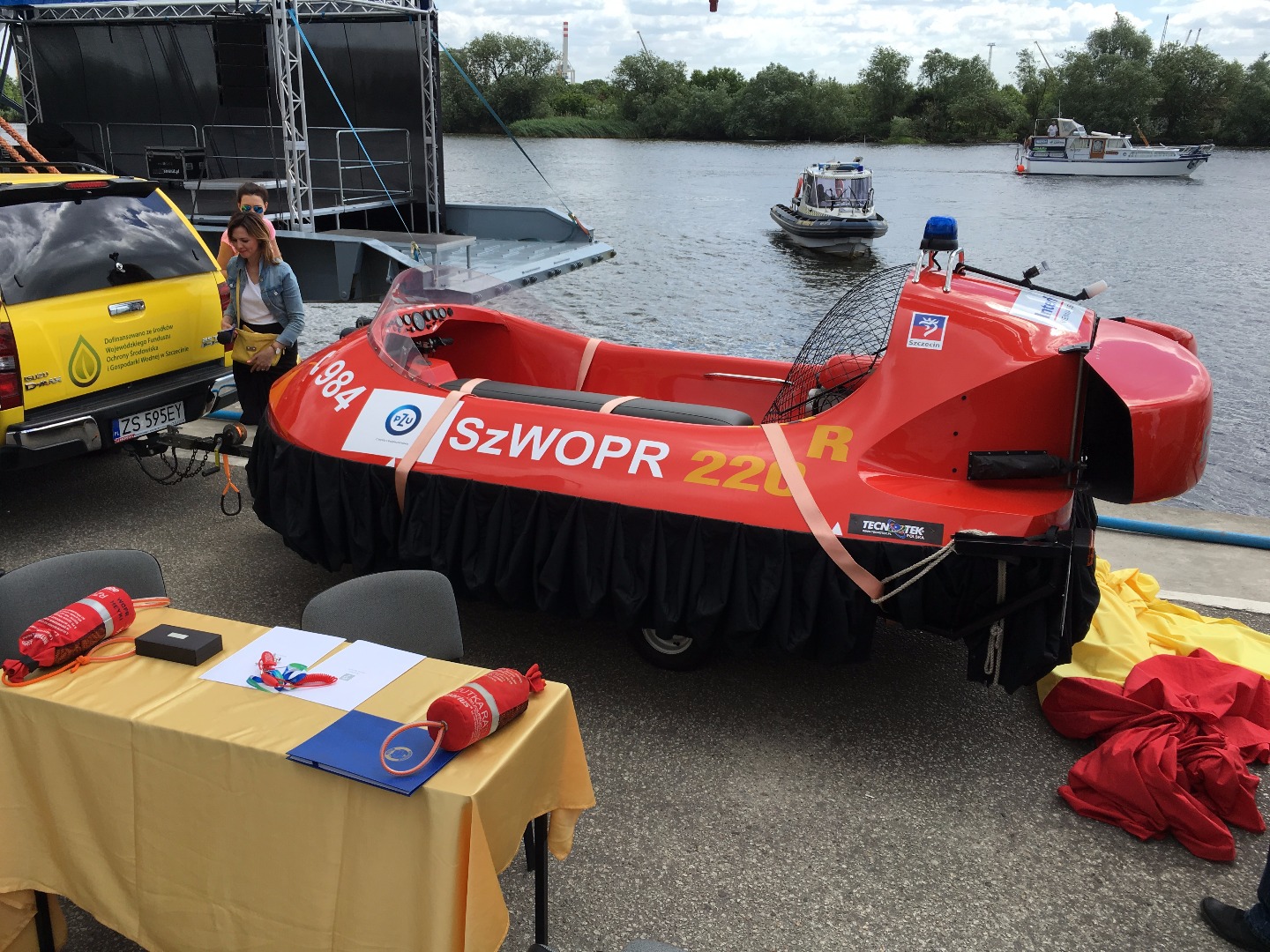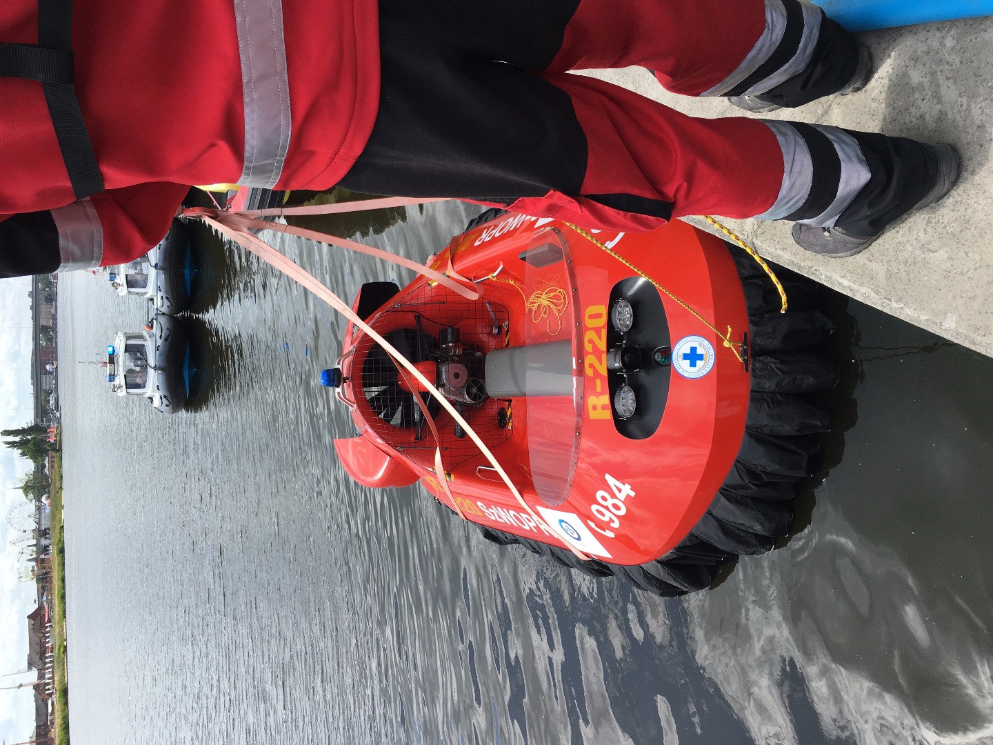 Uroczyste przekazanie kluczyków do poduszkowca odbyło się podczas Dni Morza, u stóp Wałów Chrobrego. Wziął w nim udział m.in. Piotr Krzystek, który chwalił pracę ratowników i podkreślał, że wielu z nich jest wolontariuszami. 150 tysięcy złotych na zakup sprzętu magistrat pozyskał od ubezpieczycieli. Matką chrzestną R-220, bo tak nazywa się maszyna, została Maria Niewęgłowska z Pomerania Brokers. ©℗