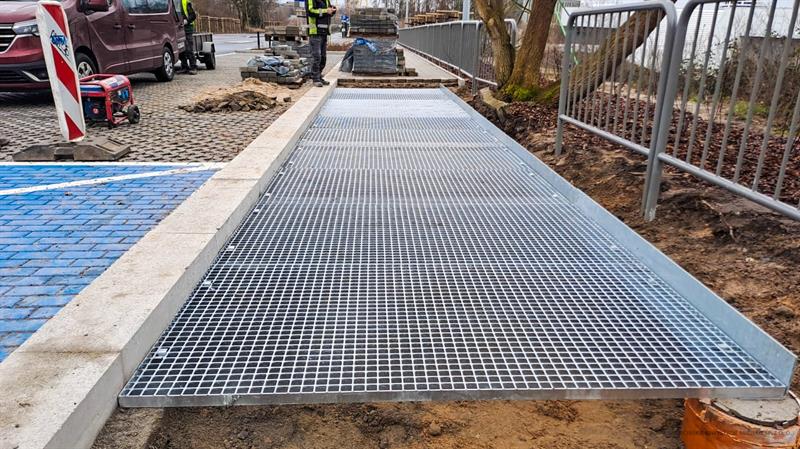 Na przebudowywanej ul. Bożeny w Szczecinie, przy powstającej „Fabryce Wody” zakończył się montaż podwieszanego chodnika. To jeden z ostatnich elementów nowej infrastruktury.