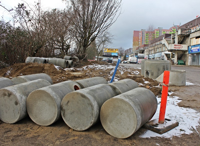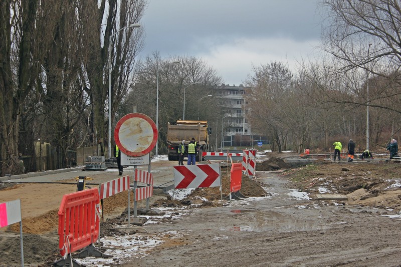 Dzięki sprzyjającej pogodzie prace przy przebudowie ul. Kułakowskiego przebiegają bardzo sprawnie. Na ponad 200-metrowym jej odcinku ułożono już nową nawierzchnię, stoją słupy oświetleniowe.