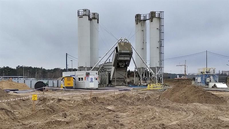 Na zdjęciu:Zakończył się właśnie montaż węzła betoniarskiego niezbędnego dla przyszłego zakładu prefabrykacji. W zakładzie tym wytwarzane będą na bieżąco segmenty żelbetowe wykorzystywane do obudowy tunelu.