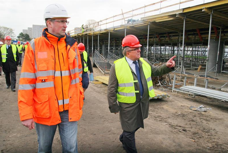 Na zdjęciu archiwalnym: Prezydent Kołobrzegu Janusz Gromek (z prawej) zwiedza plac budowy nowego fragmentu kołobrzeskiej obwodnicy.