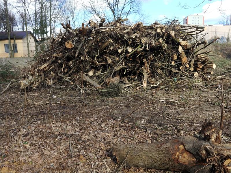 Nacieli tego drewna, w kupki poukladali, będzie ognisko?, czy wywiezione na czas ?.
