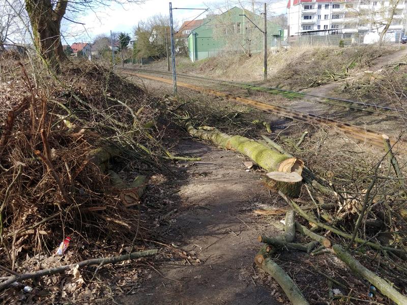 wycinka być musi i nie podlega żadnej dyskusji. Problemem jest to że zwalają to gdzie popadnie i nikt tego nie sprząta, ani nie wywozi. Latem ubiegłego roku kilka takich stert płonęło. (na Skolwinie 4x, na Żelelchowej 2x, na Gocławiu 2x) Wskutek tych pożarów np. na Skolwinie ucierpiały żywe i rosnące drzewa, nie wiele brakowało by pożar przeniósł się na pobliskie zabudowania. PKP PLK niejednokrotnie zapewniało że posprząta to i nic nie uprzątnięto sterty jak leżały tak leżą. Ludziom zabrać nie pozwolili, jeździli co jakiś czas sprawdzali i mandaty wystawiali jak kogoś złapali. Rok minął i po roku dokładają następne. Tam gdzie tory blisko drogi są jak np. ul. Nad Odrą porzucone drzew stanowią zagrożenie dla ruchu drogowego i wszyscy odpowiedzialni to w d... mają