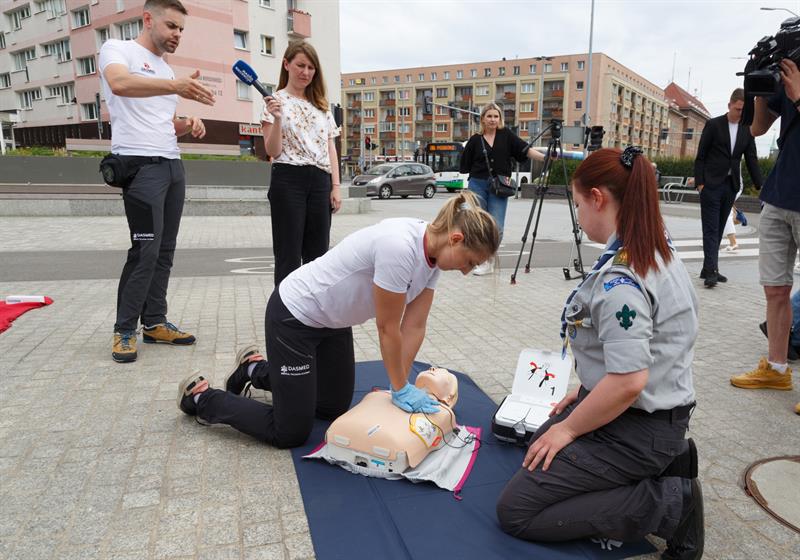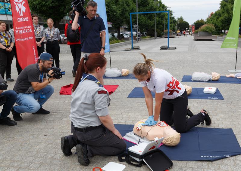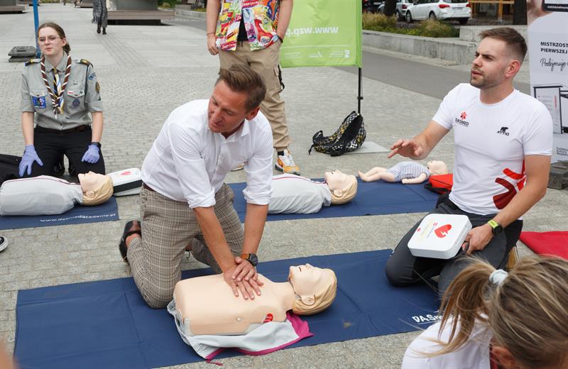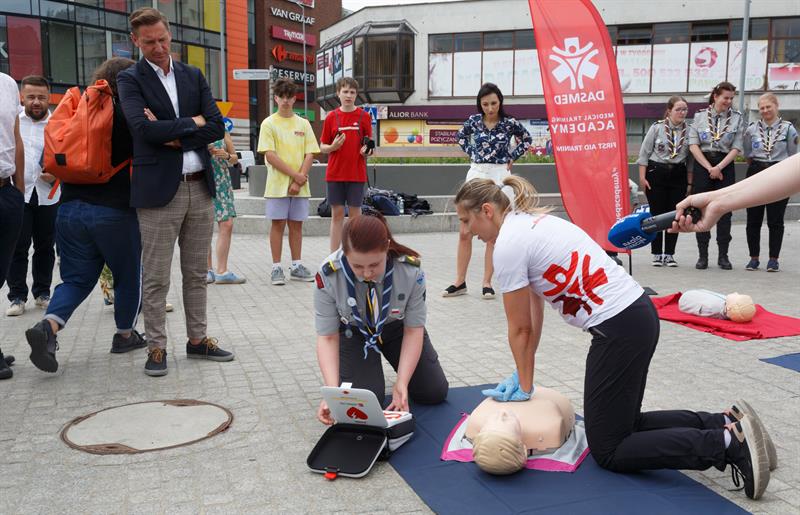 Środowa akcja polegała na przeszkoleniu zainteresowanych osób. Udział wzięli zarówno ludzie z Fundacji Kultury Bezpieczeństwa, Urzędu Marszałkowskiego oraz ratownicy i harcerze z Chorągwi Zachodniopomorskiej ZHP. Zainteresowanym tłumaczyli, jak postępować z osobą nieprzytomną - jak uciskać klatkę piersiową i przede wszystkim - jak używać defibrylatora.