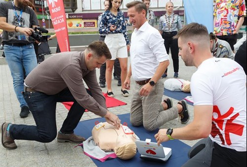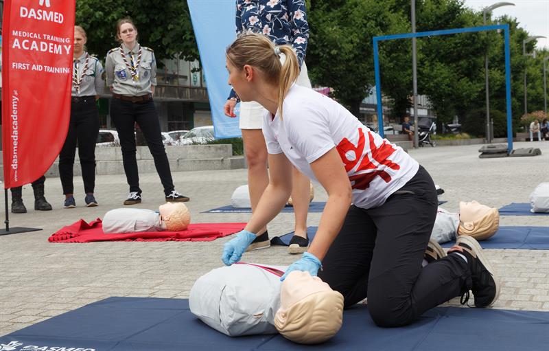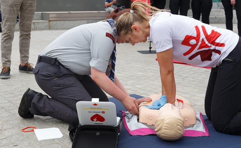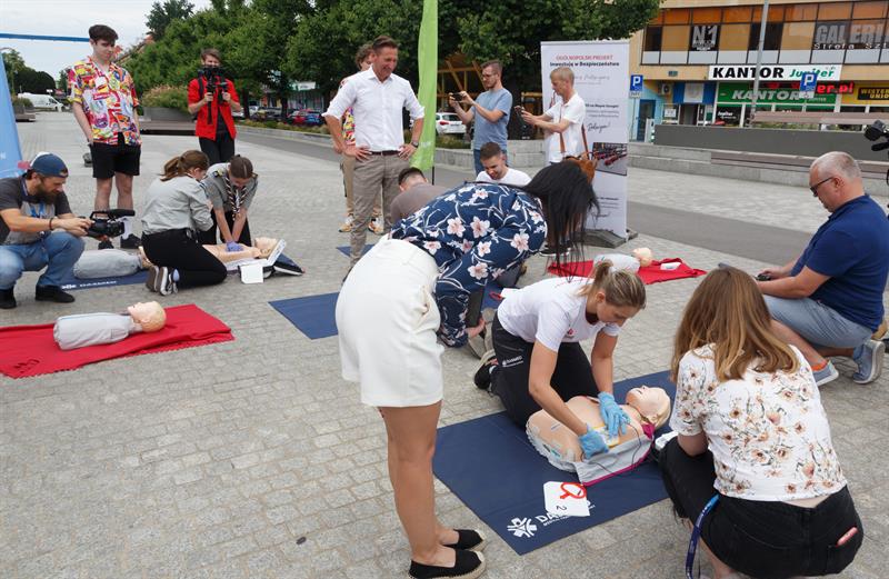 - Ideą dzisiejszego wydarzenia jest promowanie ratowania życia za pomocą defibrylatora - mówi Kinga Kurcz (Fundacja Kultury Bezpieczeństwa). - Uczymy tego na fantomach.