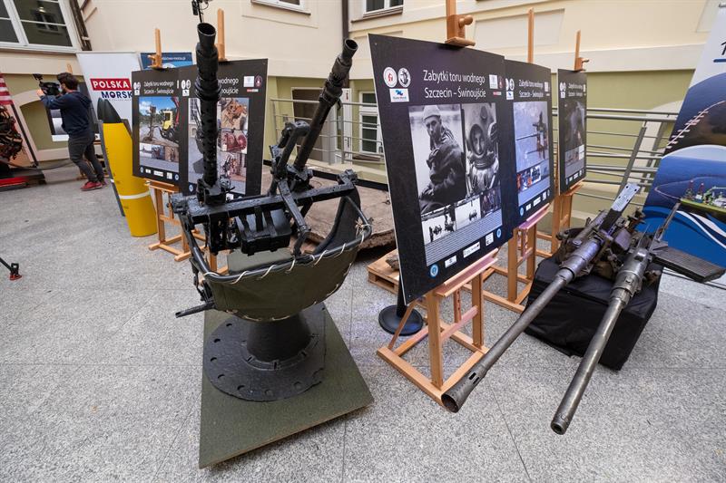 Oprócz 25 plansz dokumentujących najciekawsze znaleziska wydobyte z modernizowanego toru wodnego Świnoujście-Szczecin, np. średniowieczny miecz z pochwą, pokazano także cenne eksponaty. Wśród nich gwiazdowy silnik lotniczy samolotu bombowego Boeing B-17 Flying Fortress z czasów drugiej wojny światowej.