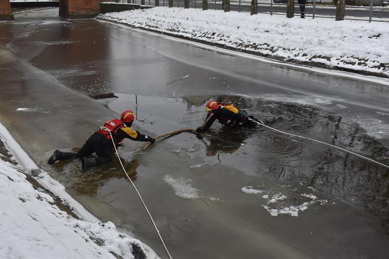 Były one prowadzone na zamarzniętym Kanale Młyńskim przy ulicy Portowej. Strażacy zaprezentowali symulację akcji ratunkowej osobie, pod którą załamał się lód. W rolę osoby tonącej i pilnie potrzebującej pomocy z pełnym poświęceniem wcielił się ubrany w specjalny skafander strażak Michał Kaczmarek. Całą akcją dowodził st. kpt. Michał Smela, dowódca Jednostki Ratowniczo-Gaśniczej KP PSP w Stargardzie. Tłumaczył uczniom, nauczycielom oraz przechodniom zgromadzonym przy kanale, jakie są rodzaje lodu, przestrzegał przed wchodzeniem na zamarznięte akweny, radził jak prostymi sposobami starać się wyciągnąć tonącego z wody.