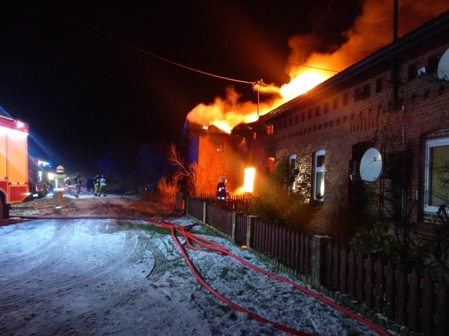 - Już w trakcie dojazdu do miejscowości dyżurny stanowiska kierowania Państwowej Straży Pożarnej poinformował zastępy, że pożar komina rozprzestrzenia się na konstrukcję budynku - relacjonują druhowie z Ochotniczej Straży Pożarnej w Czaplinku. - Po przybyciu na miejsce stwierdzono, że pali się parterowy budynek wielorodzinny. Polecono niezwłocznie podać prąd wody w obronie drugiego mieszkania, które nie zostało jeszcze objęte płomieniami.