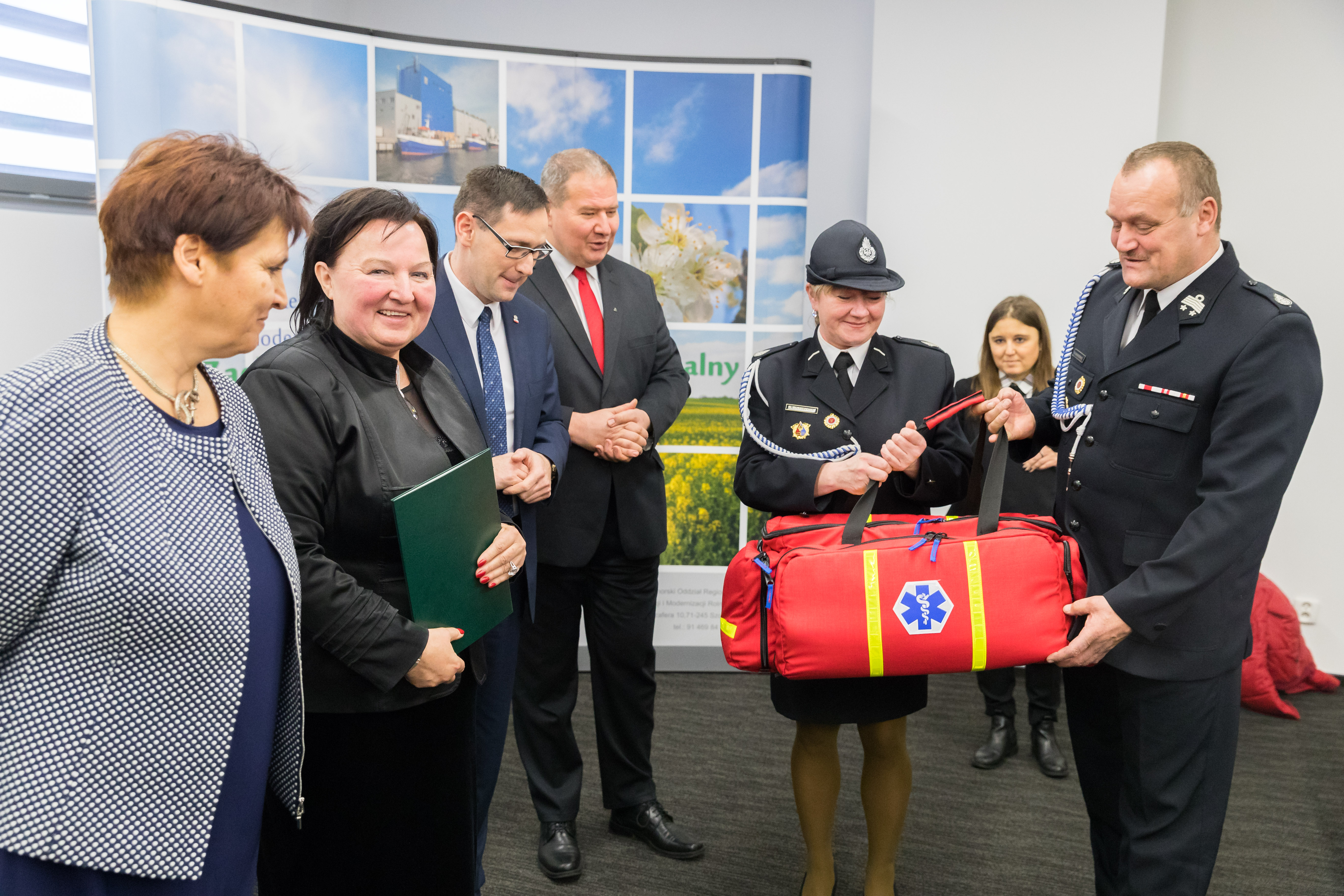 Podczas wizyty w Szczecinie przekazano przedstawicielom siedmiu przedszkoli i oddziałów przedszkolnych w najbiedniejszych gminach województwa, m.in. w Brojcach, Bielicach, Brzeżnie, zestawy edukacyjne. Z kolei strażacy ochotnicy z Chociwla i Tetynia odebrali z rąk prezesa torby medyczne ze sprzętem do ratowania życia. ©℗