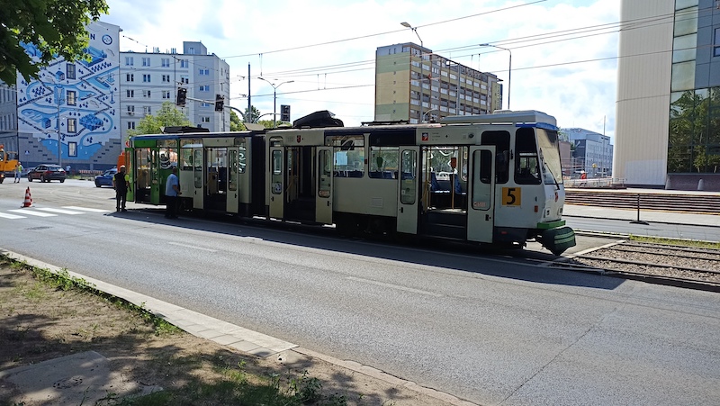 W czwartek około godziny 15 wstrzymano ruch tramwajowy w ul. Matejki. Na skrzyżowaniu z ul. Piłsudskiego tramwaj linii 5, jadący w kierunku stoczni, połamał pantograf.