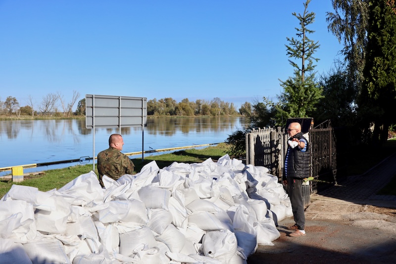 stało. To zaszczyt z nimi współpracować. Mamy pełne wsparcie logistyczne, sprzętowe, i siłę żołnierzy, którzy bardzo sprawnie przygotowali z nami umocnienia przeciwpowodziowe. Wszystko to powstało fachowo, zgodnie ze sztuką. Obserwuję Odrę i widzę, że woda w naszym rejonie się podniosła wraz z falą kulminacyjną, ale spodziewamy się dalszego przyrostu o około 30 centymetrów, więc nie powinno być źle.
