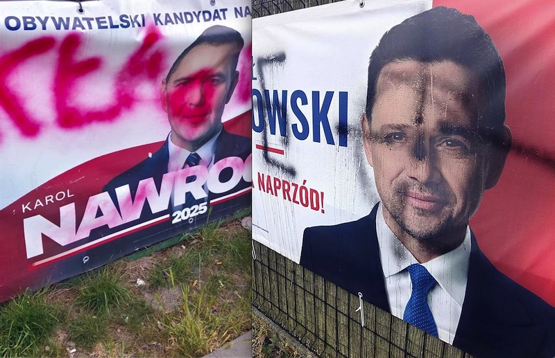 Na jednym z banerów wyborczych Rafała Trzaskowskiego w Chociwlu ktoś wymalował swastyki, w Stargardzie plakat na Starym Mieście opatrzył wulgarnym napisem. W Stargardzie na os. Pyrzyckim inny wandal wyciął twarz Karolowi Nawrockiemu, za jakiś czas został przyklejony, a potem zniknął całkowicie. Inne pomazano farbą, i namalowano napis „kłamca”. „Dostało” się też Grzegorzowi Braunowi, jego baner przy rondzie niedaleko os. Pyrzyckiego zapaćkano farbą. Najmniej zniszczeń na materiałach wyborczych, wedle naszych obserwacji, odnotowano w Stargardzie i powiecie stargardzkim w przypadku Szymona Hołowni czy Magdaleny Biejat. Wandale zrywają banery, wydłubują kandydatom oczy, piszą niewybredne komentarze.