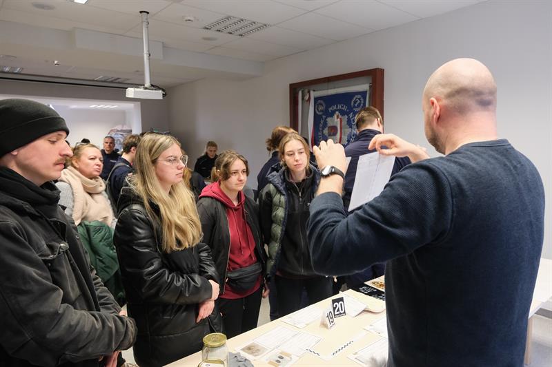 Osoby odwiedzające KMP w Szczecinie miały również możliwość porozmawiania z funkcjonariuszami z Wydziału Kadr i Szkolenia na temat procedur związanych z doborem do służby w policji.