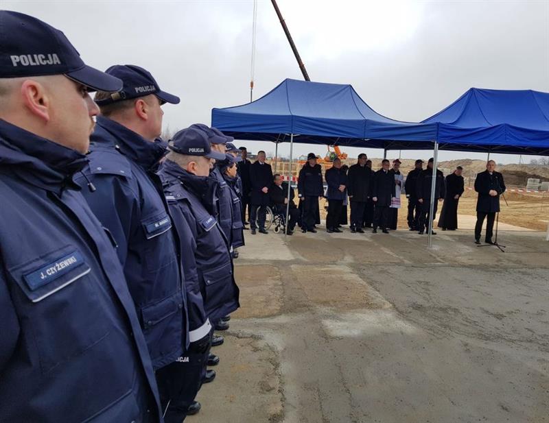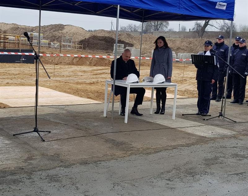 W poniedziałek na placu budowy odbyło się uroczyste podpisanie aktu erekcyjnego. W wydarzeniu wzięli udział m.in.: minister spraw wewnętrznych i administracji Joachim Brudziński, sekretarz stanu w MSWiA Paweł Szefernaker, zastępca komendanta głównego policji nadinsp. Kamil Bracha, wojewoda zachodniopomorski Tomasz Hinc, szef zachodniopomorskich policjantów nadinsp. Jacek Cegieła i komendant powiatowy policji w Świdwinie insp. Piotr Krakowski.