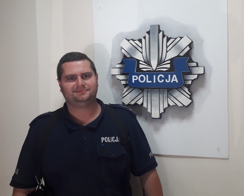 Młodszy aspirant Kacper Szarkiewicz, dzielnicowy ze Sławna, zauważył motocyklistę, który swoim jednośladem wjechał na krawężnik, następnie uderzył w bok samochodu osobowego, po czym próbował odjechać z miejsca zdarzenia. Mundurowy podbiegł do niego i uniemożliwił mu dalszą jazdę zatrzymując pojazd oraz wyjmując kluczyki ze stacyjki. Następnie wezwał patrol policji, któremu przekazał motocyklistę.