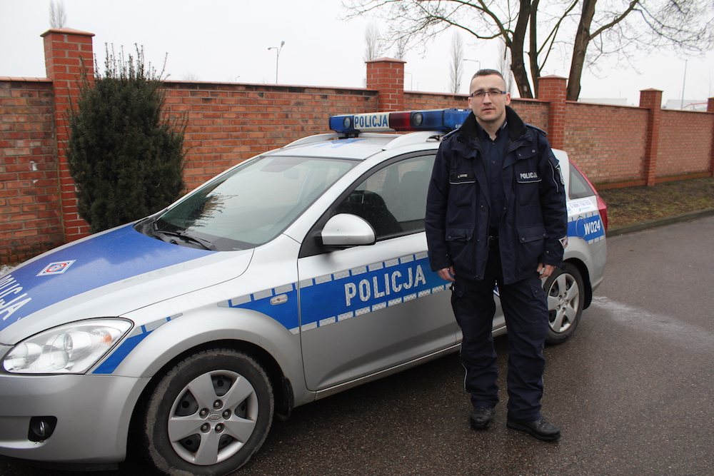 Na zdjęciu: Mł. asp. Łukasz Dawid na co dzień pełniący służbę w Przybiernowie.