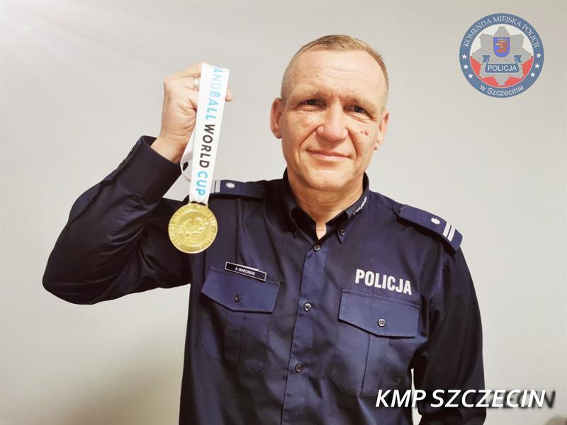 Artur Marciniak, zastępca komendanta Komisariatu Szczecin-Pogodno, to policjant na medal. I to dosłownie. Niedawno wrócił z Chorwacji, gdzie zdobył złoty medal Pucharu Świata w piłce ręcznej.