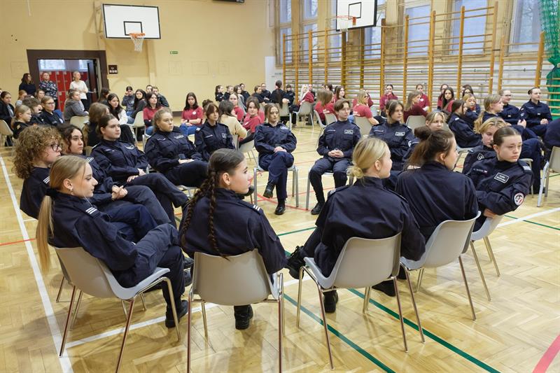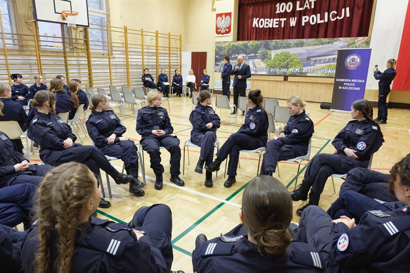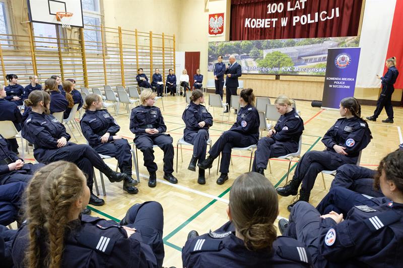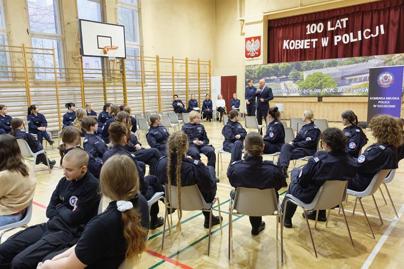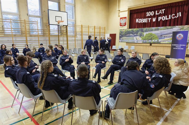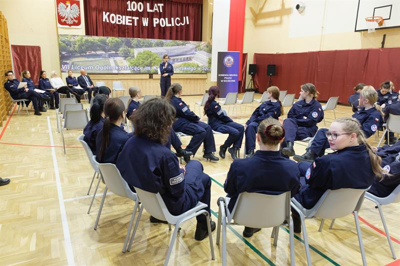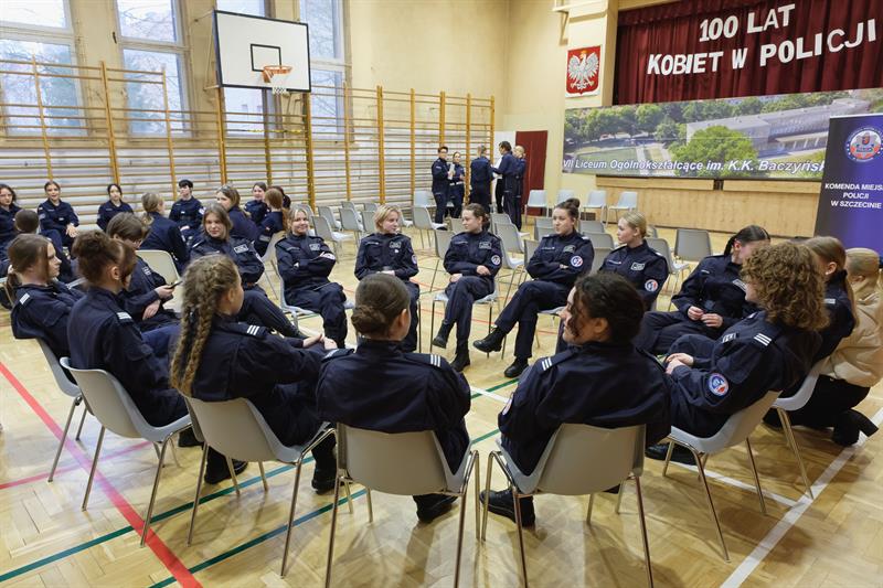26 lutego 2025 roku obchodziliśmy setną rocznicę obecności kobiet w polskiej policji. Z tej okazji w VII Liceum Ogólnokształcącym im. Krzysztofa Kamila Baczyńskiego w Szczecinie odbyło się spotkanie, podczas którego funkcjonariuszki z Komendy Miejskiej Policji w Szczecinie podzieliły się z uczennicami swoimi doświadczeniami i zachęcały do rozważenia kariery w służbach mundurowych.
