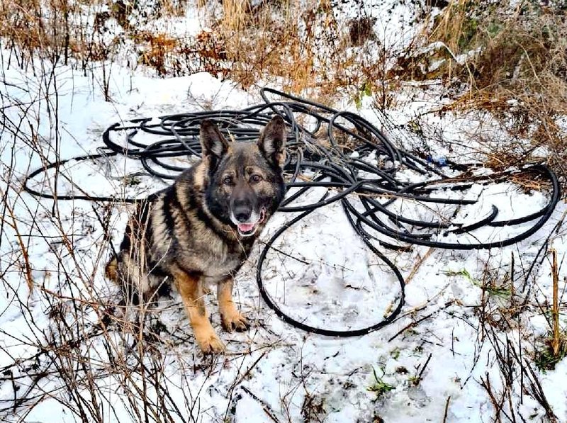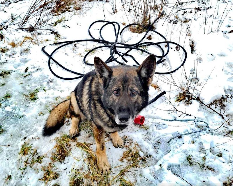 Pies Karzeł z miejsca podjął trop, który po kilkuset metrach doprowadził funkcjonariuszy do miejsca, gdzie leżały skradzione przedmioty. Czworonóg nie poprzestał jednak na tym i idąc dalej odkrył kolejne kable, które były zakopane i pokryte śniegiem.