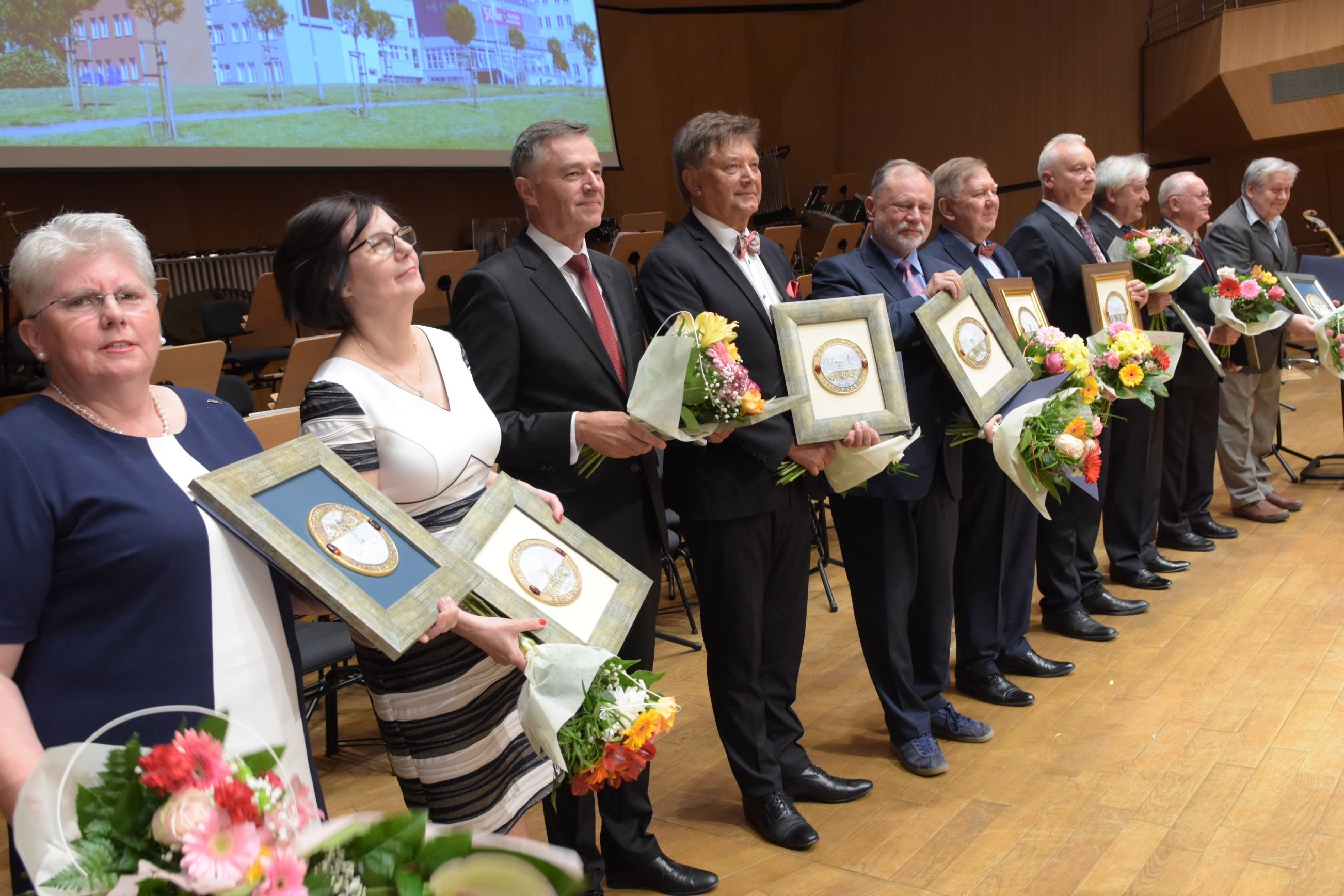 Jubileusz PK świętowała w czwartkowe (7 bm.) popołudnie w Filharmonii Koszalińskiej. Była okazja do wręczenia pracownikom uczeni odznaczeń państwowych, nadanych przez Prezydenta RP oraz Medali Komisji Edukacji Narodowej. A także wyróżnień specjalnych dla zasłużonych, długoletnich pracowników uczelni. Medalami Politechniki Koszalińskiej uhonorowani zostali: prof. Józef Borkowski, prof. Wojciech Kacalak, prof. Krzysztof Wawryn, prof. Tomasz Krzyżyński (wszyscy to byli rektorzy PK), prof. Kazimierz Szymański (Wydział Inżynierii Lądowej, Środowiska i Geodezji), prof. Michał Jasiulewicz (Wydział Nauk Ekonomicznych), prof. Bogusław Polak (Wydział Humanistyczny), kanclerz dr Artur Wezgraj, mecenas Teresa Mańkowska-Florczak (radczyni prawna PK) i Irena Ciesielska (koordynatorka Uniwersytetu Trzeciego Wieku, była kwestorka uczelni). Rektor PK wręczył też okolicznościowe statuetki najbardziej aktywnym studentom.