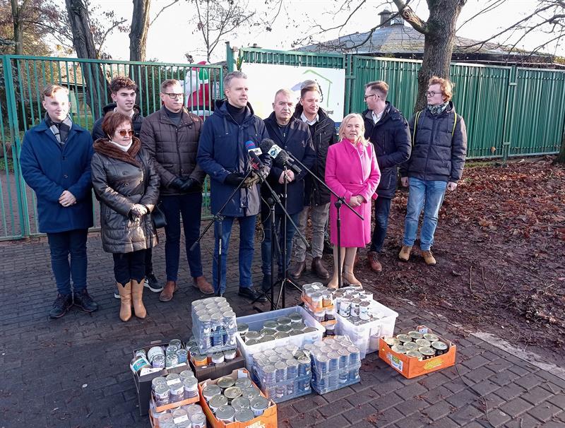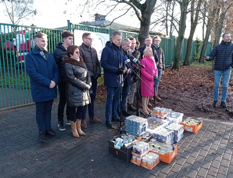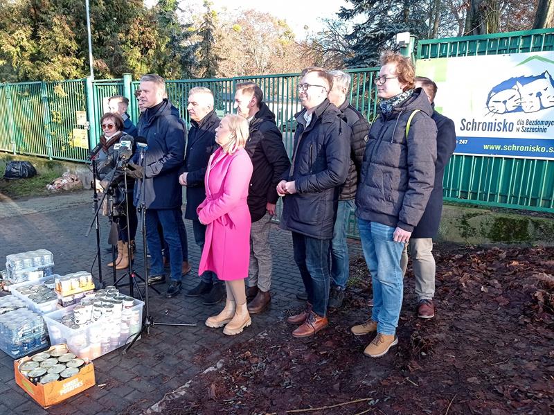 Dzięki funduszom zebranym w ramach akcji ph. „Karma dla zwierzaków zamiast fajerwerków”, przedstawiciele szczecińskiej PO zakupili i przekazali do lokalnego schroniska dla bezdomniaków 200 puszek wysokomięsnej karmy. Fot. Arleta Nalewajko