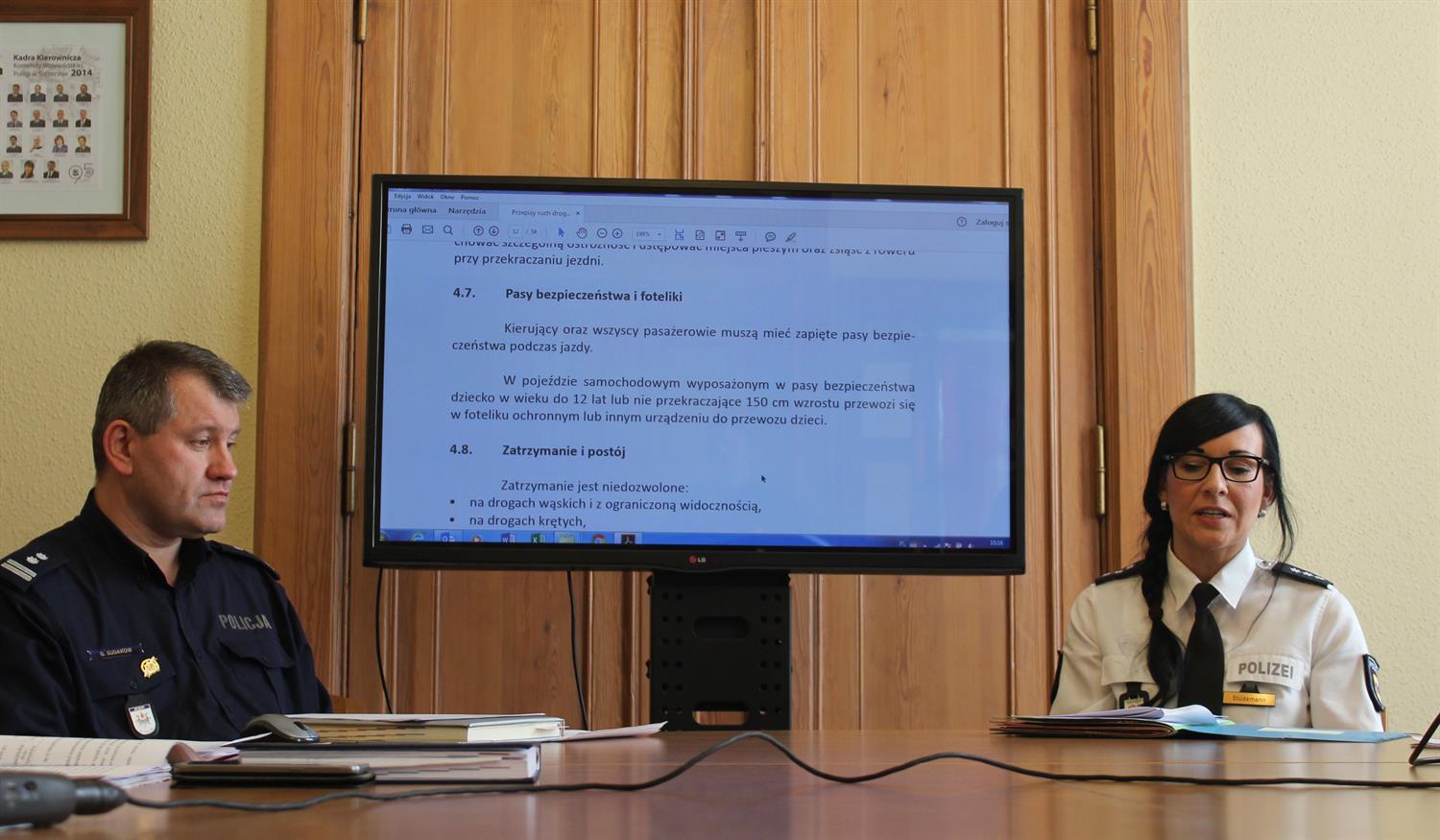 Na zdjęciu: Mł. insp. Grzegorz Sudakow z KWP w Szczecinie i Madeleine Stüdemann z policji drogowej w Neubrandenburgu.