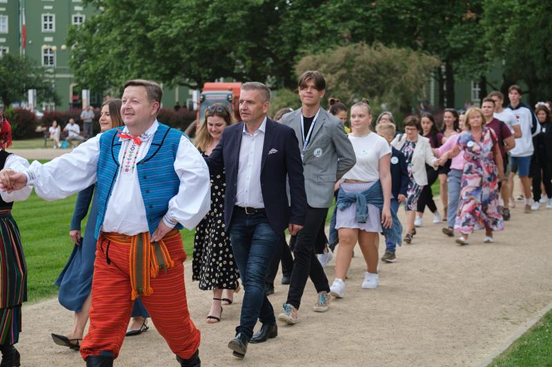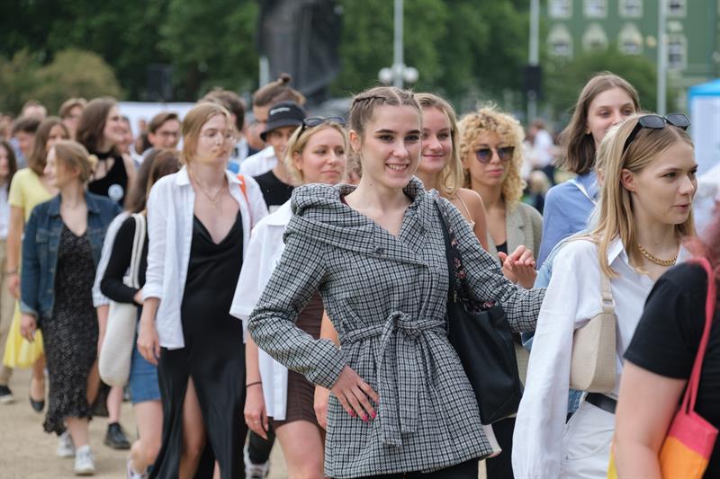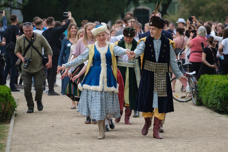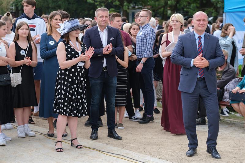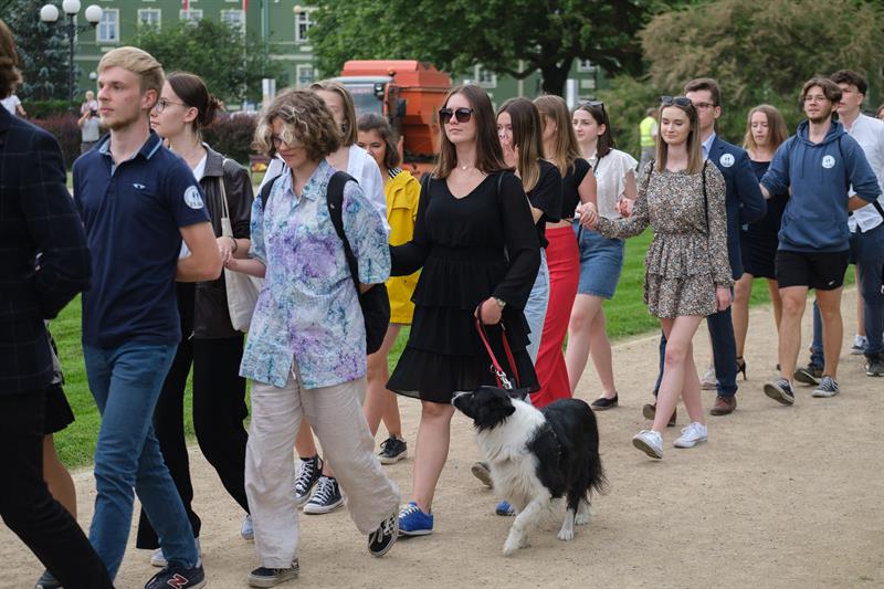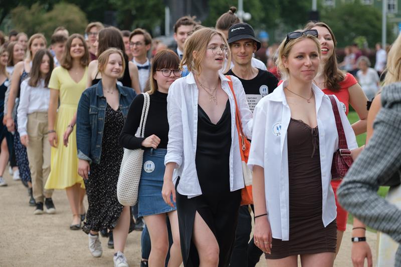 Poloneza poprowadzili tancerze zespołu "Krąg", ale do tańca ustawili się nie tylko tegoroczni abiturienci i uczniowie szczecińskich szkół ponadpodstawowych, ale także ich nauczyciele i politycy, seniorzy odpoczywający w parku, a nawet przedszkolaki.