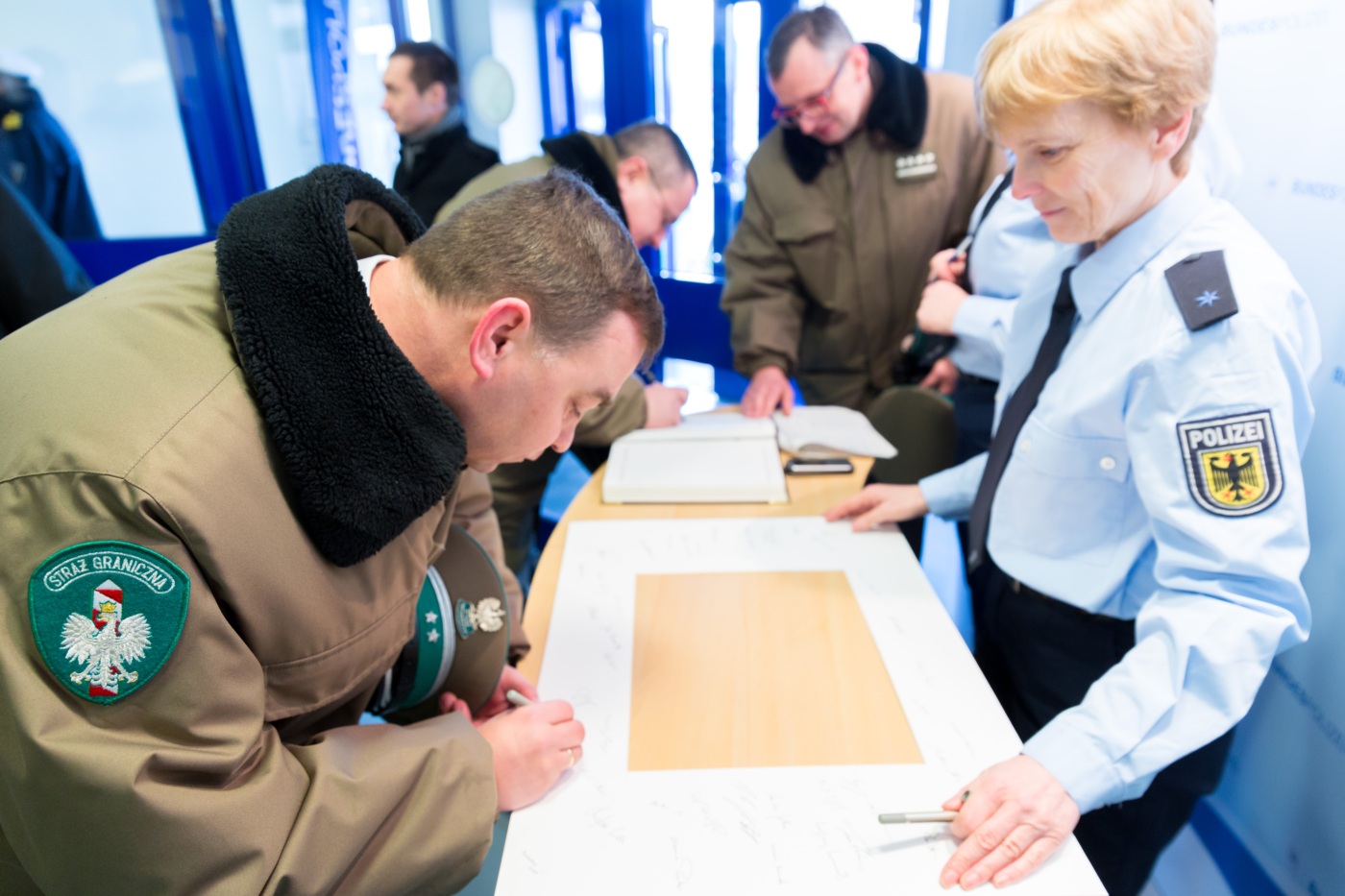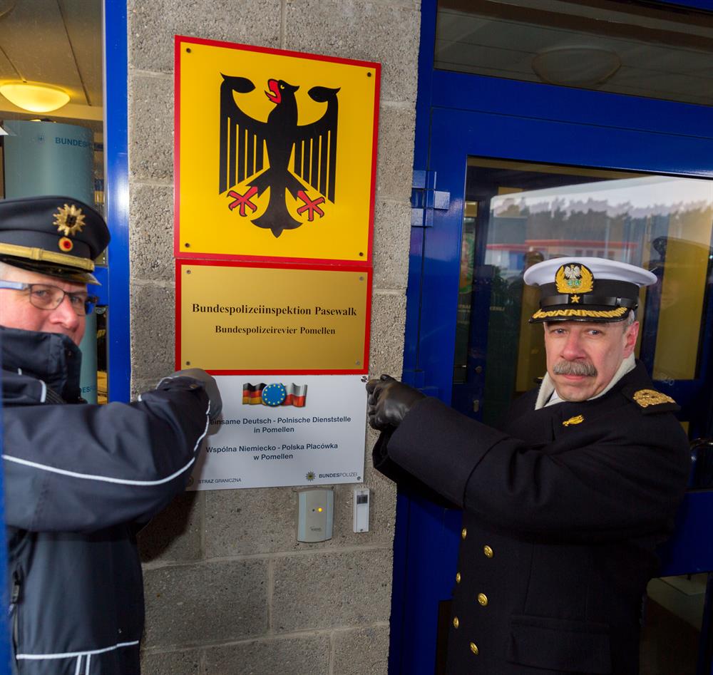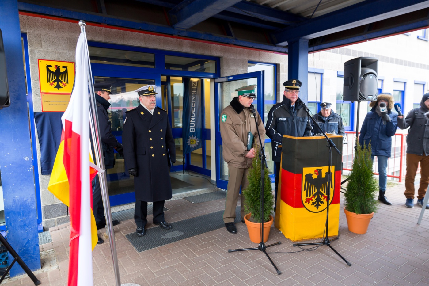 Działalność nowej placówki uroczyście zainaugurowali kontradm. SG Piotr Stocki, komendant Morskiego Oddziału Straży Granicznej, oraz Joachim Franklin, prezydent Dyrekcji Policji Federalnej w Bad Bramstedt. Polską Straż Graniczną reprezentowali ponadto kmdr SG Wojciech Heninborch i płk SG Tomasz Michalski, zastępcy komendanta Morskiego i Nadodrzańskiego Oddziału SG oraz komendanci jednostek organizacyjnych MOSG i NOSG. Wśród uczestników uroczystości znaleźli się także przedstawiciele władz wojewódzkich i samorządowych ze Szczecina oraz władz kraju federalnego Meklemburgia – Pomorze Przednie i niemieckich władz lokalnych.