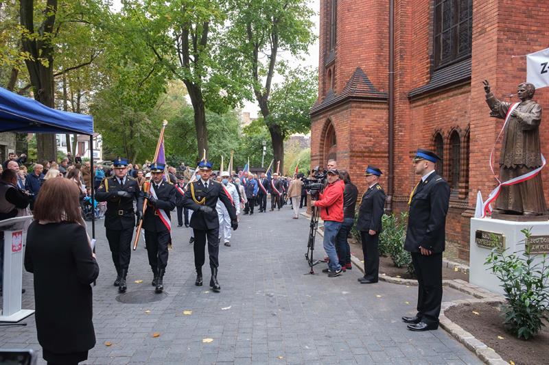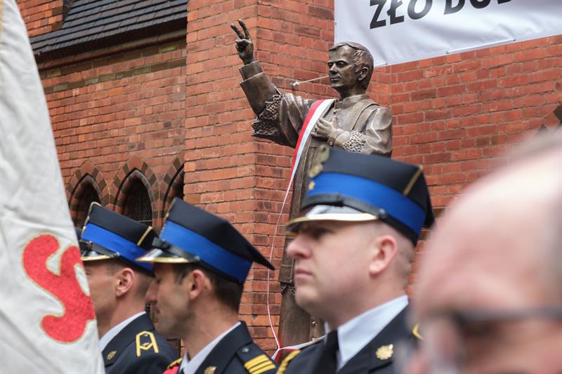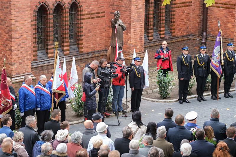 - Dobrze się stało, że tutaj w Szczecinie, w kolebce „Solidarności” - bo to przecież nie tylko Gdańsk, ale i Szczecin - mamy upamiętnienie dwóch wielkich postaci związanych z polską droga do wolności, związanych z Niezależnym Samorządnym Związkiem Zawodowym „Solidarność” - mówił wojewoda. - Dobrze, żebyśmy również pamiętali, patrząc na to hasło, które jest za pomnikiem: „Zło dobrem zwyciężaj”, które ksiądz Jerzy powtarzał, że to zło było, nie działo się samo, to zło było czynione przez konkretnych ludzi. I nie chodzi o odwet, o zemstę, ale chodzi o sprawiedliwość. Tej sprawiedliwości przy tym pomniku powinniśmy dochowywać i pilnować. Mimo upływu lat. Żeby kolejne pokolenia pamiętały o tym, że byli ludzie sprawiedliwi, którzy żyli w prawdzie, ale byli również ci, którzy tę prawdę chcieli zadeptać. I dzięki takim ludziom, dzięki takim niezłomnym postaciom, jaką był błogosławiony ksiądz Jerzy, to się nie udało i dzięki nim żyjemy dzisiaj w wolnej, niezależnej, suwerennej Rzeczypospolitej.
