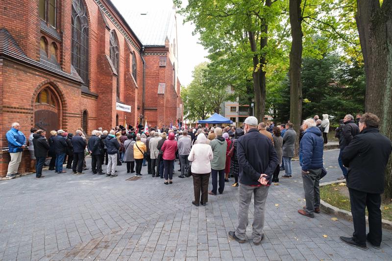 W uroczystościach odsłonięcia pomnika uczestniczył Piotr Duda, przewodniczący NSZZ „Solidarność”.