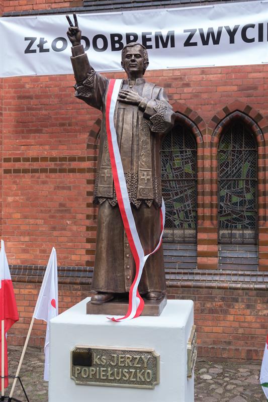 Pomnik błogosławionego księdza Jerzego Popiełuszki, patrona NSZZ "Solidarność", został uroczyście odsłonięty i poświęcony w niedzielę, 17 października w Szczecinie. Stanął dzięki staraniom związku na placu Matki Teresy z Kalkuty.