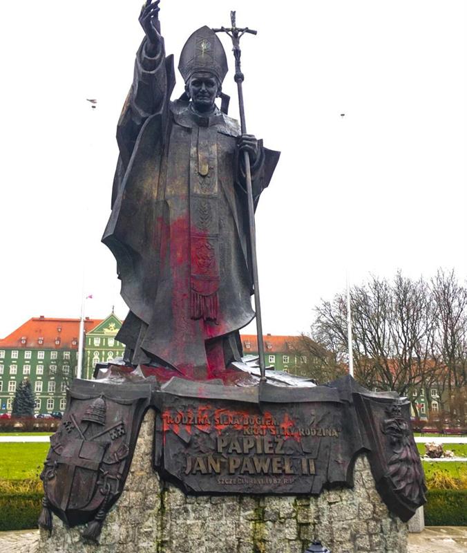czerwonolewacka hołota w akcji, ciekawe czy Prokop potępi dewastację pomnika Papieża
