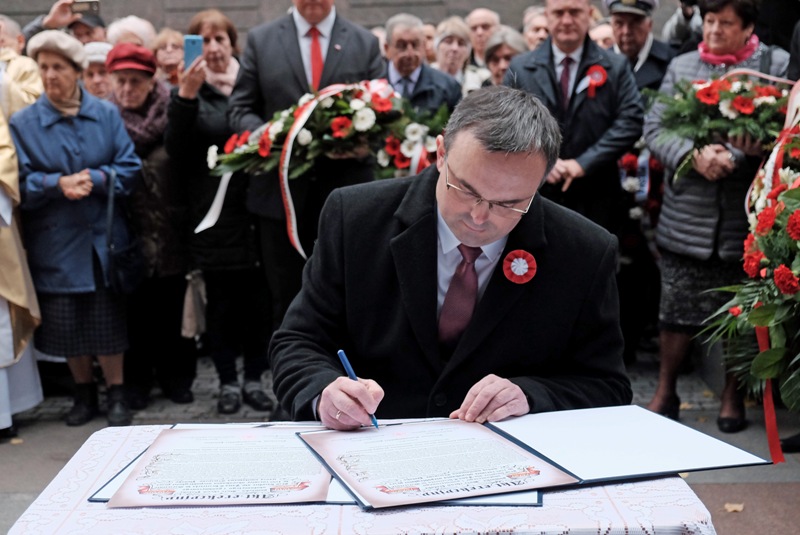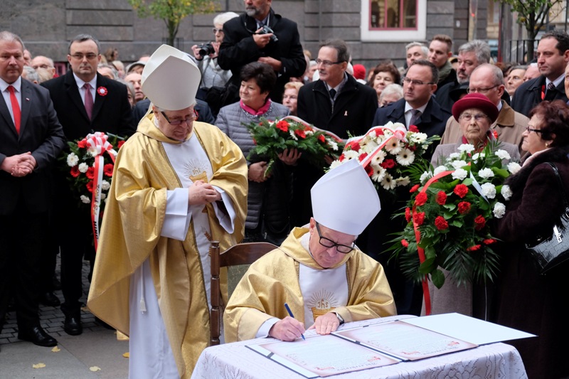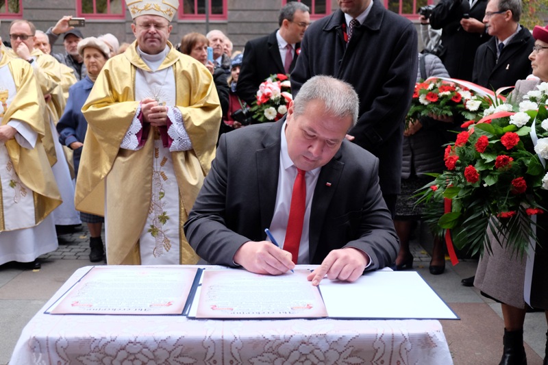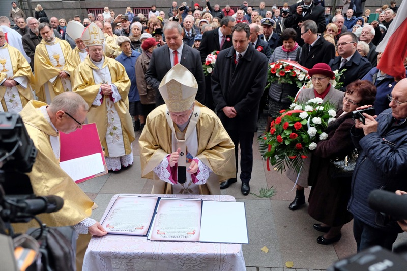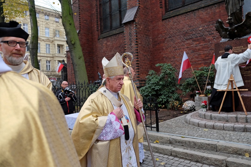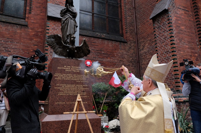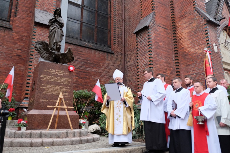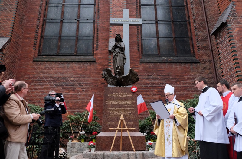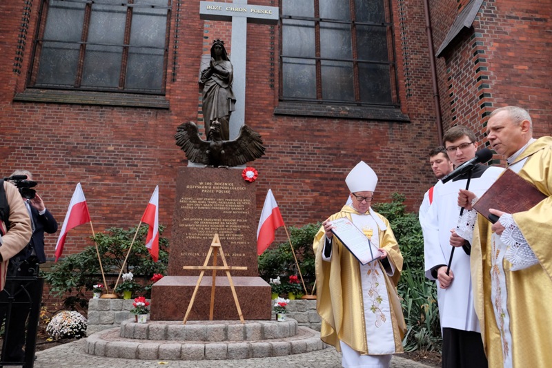 W dniu Święta Niepodległości odsłonięto w Szczecinie pomnik upamiętniający setną rocznicę odrodzenia suwerennej Polski. Pomnik stanął w bezpośrednim sąsiedztwie Bazyliki św. Jana Chrzciciela przy ul. Bogurodzicy. Uroczystość odsłonięcia poprzedziła msza święta odprawiona w Bazylice.