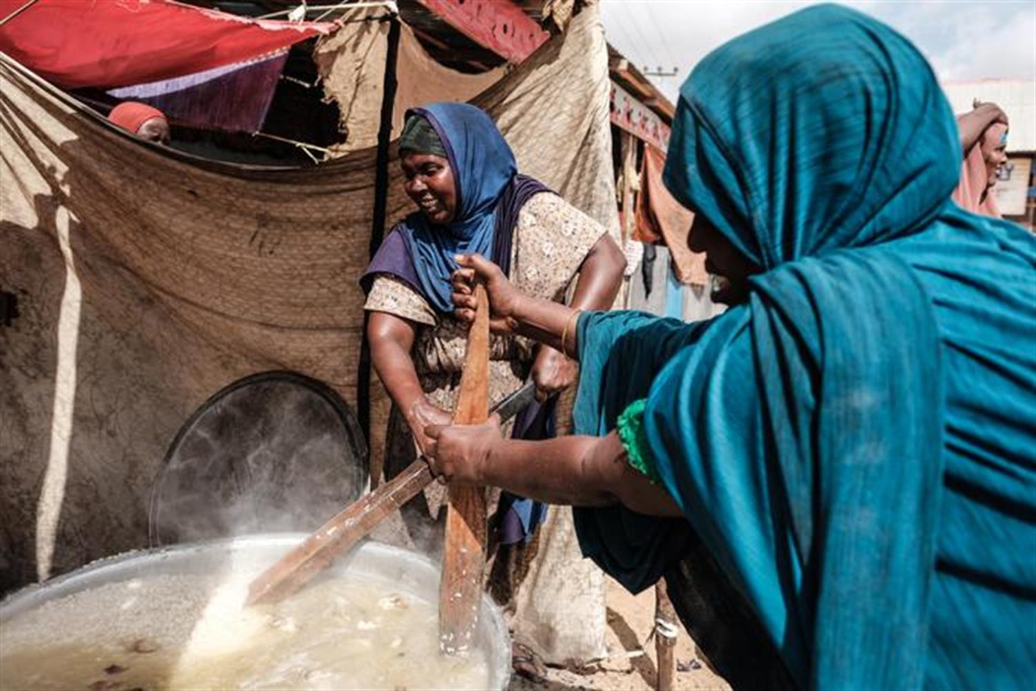 Na zdjęciu: Kobiety w Somalii gotują ryż dla mieszkańców obozu, do którego z powodu suszy trafiają codziennie kolejne osoby.