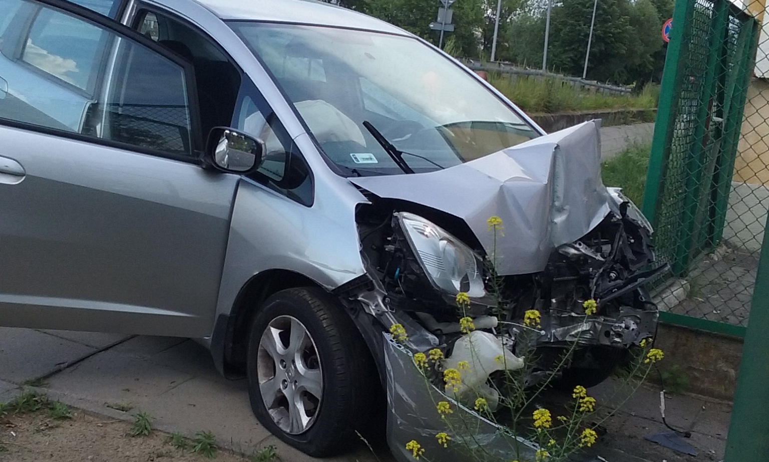 Strażnicy miejscy z oddziału Prawobrzeże po skończonej służbie, będąc jeszcze na terenie placówki, usłyszeli huk i odgłos uderzenia samochodu przed swoją siedzibą. Podbiegli do drogi i zobaczyli hondę, która staranowała barierę energochłonną i wbiła się w ogrodzenie budynku. Wokół pojazdu unosił się dym i tumany pyłu.