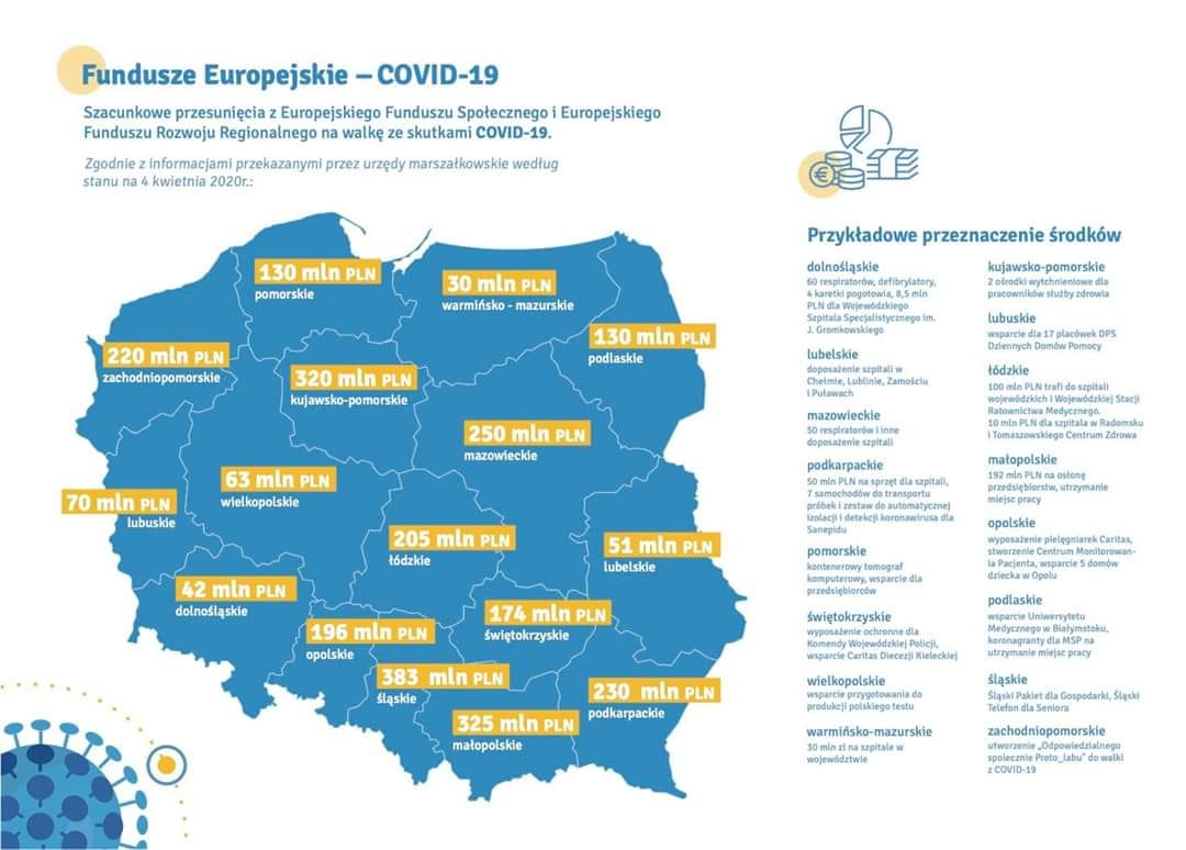 220 mln, czyli około 130 zł na osobę uruchomiono w ramach regionalnych środków unijnych w Zachodniopomorskiem na walkę z pandemią COVID-19. Tak wynika z szacunkowych informacji opublikowanych przez Przedstawicielstwo Komisji Europejskiej w Polsce. Wyliczenia wskazują, że Pomorze Zachodnie jest czwartym regionem w kraju, pod względem przesunięć środków w ramach regionalnych programów operacyjnych w celu przeciwdziałania skutkom pandemii.