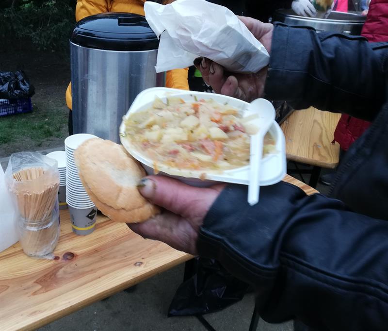 Czwartkowa ciepła zupa dla osób starszych, schorowanych, bezdomnych gotowa jest bez względu na wszystko. Także teraz, w czasach zarazy, dostosowując się do przepisów prawa i zachowując środki ostrożności, wolontariusze szykują ją dla potrzebujących. Kiedy nie można spożywać zupy na placu, wydają na wynos. Z pomocy co czwartek korzysta około 150-200 osób. Dostają również kawę, herbatę, kanapki, ciasto. Organizatorzy Spotkań w soboty kontynuują objazdy miejsc niemieszkalnych, docierając do bezdomnych z pomocą żywnościową.